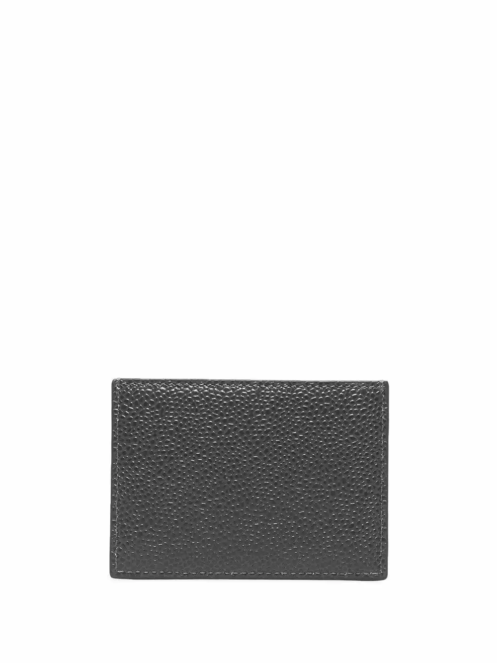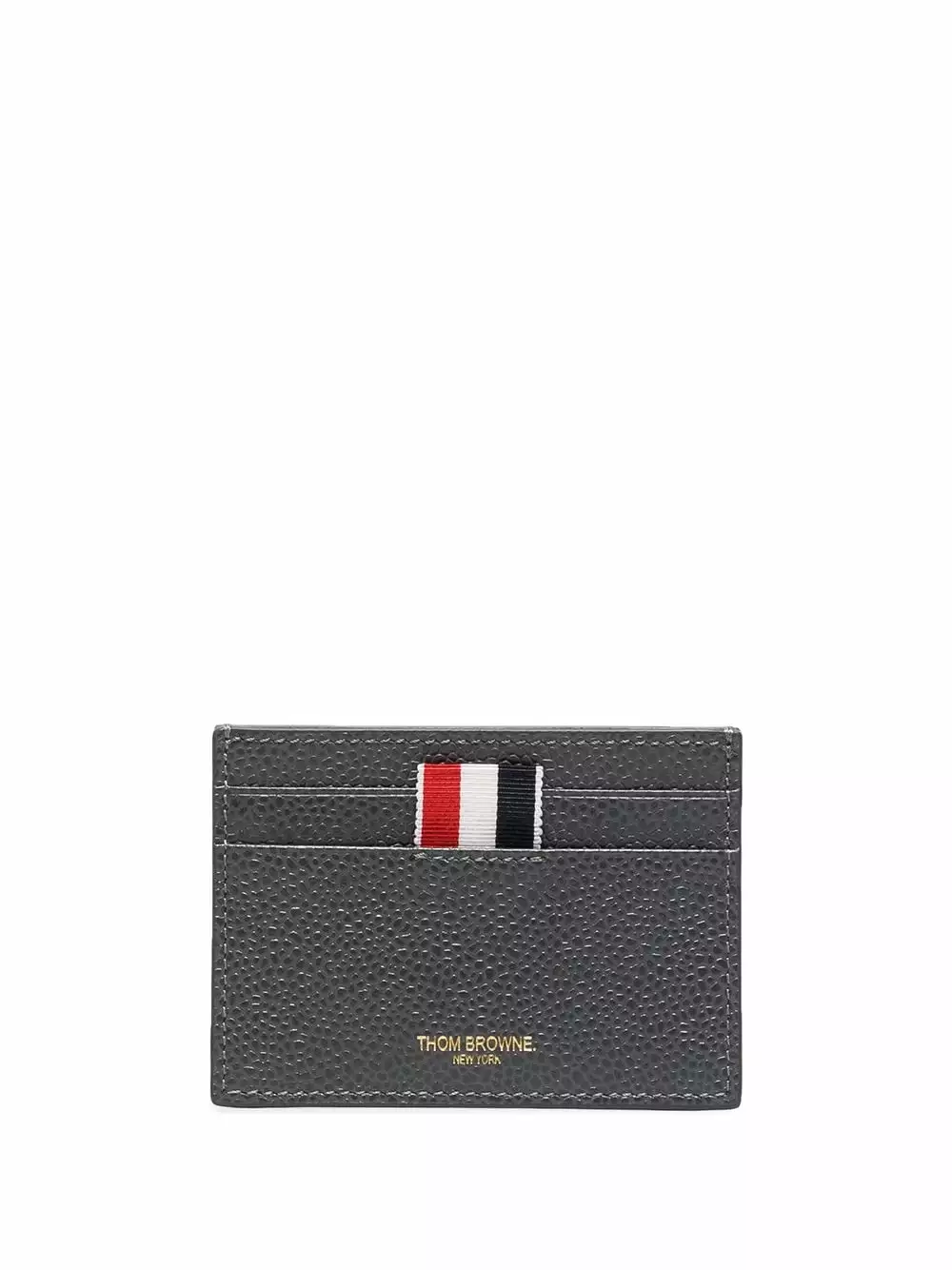 Dark grey leather RWB tab grained cardholder from THOM BROWNE featuring RWB stripe, grained texture, card slots and embossed logo to the front.