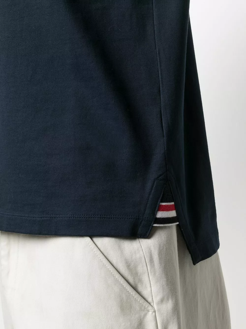 There’s no such thing as too many blue T-shirts. For a Thom Browne one like this RWB tipping stripe short-sleeve T-shirt, we can always make some space in our drawers. Sign up for this.