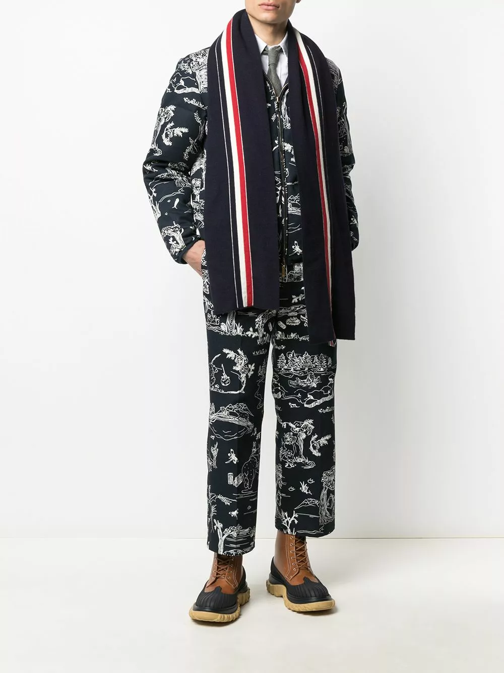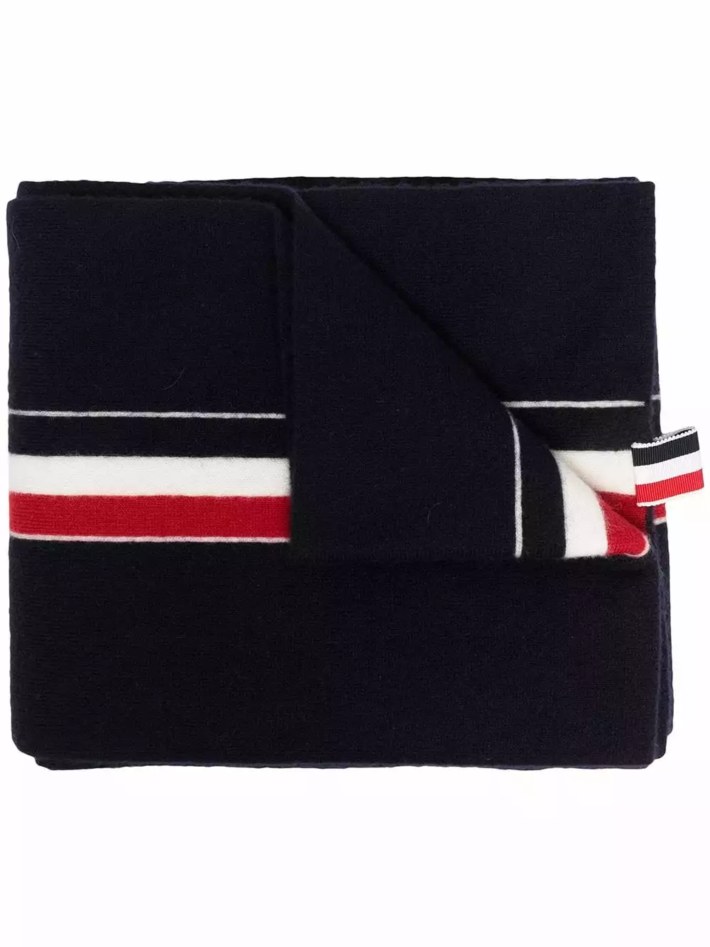 Too prepared? No such thing. Face the cold this winter with the help of this cosy Thom Browne merino wool scarf. Throw on and head out.