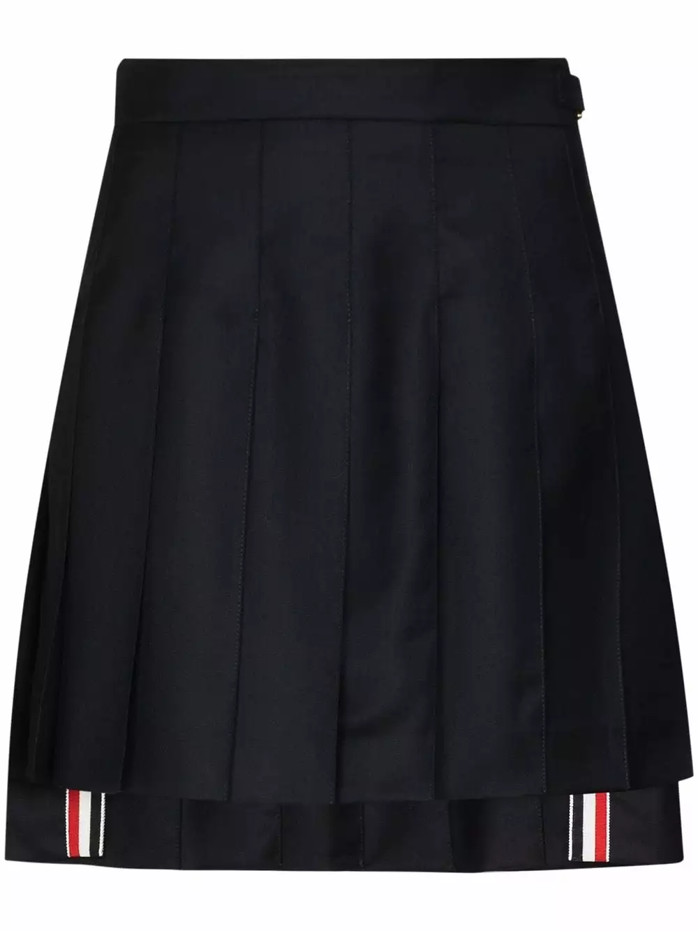 A wardrobe of reimagined – but never boring – classics, Thom Browne’s Spring/Summer 2019 collection takes uniform dressing to chic new heights. Crafted in Italy, this navy blue wool School Uniform pleated skirt from Thom Browne features a high rise, a side button fastening, a short length, a signature grosgrain trim and a signature grosgrain loop tab.