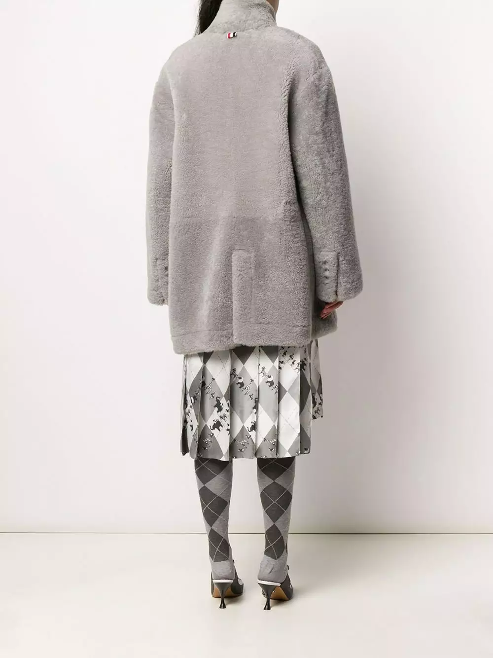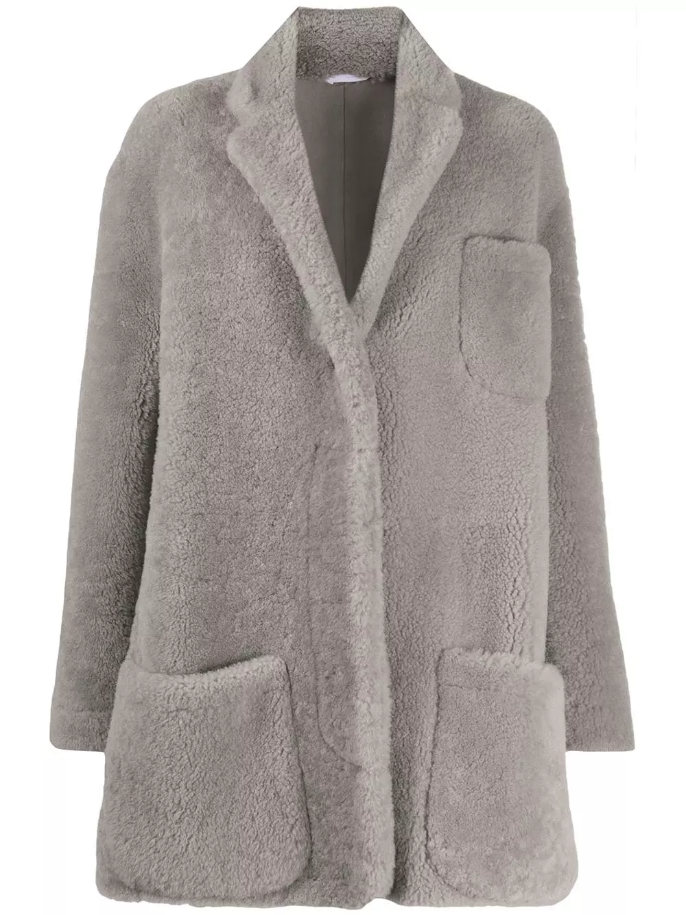 There’s no better cure for the cold than a cosy shearling coat. This medium grey Thom Browne one comes in an oversized style so you can have fun with your layering. Totally worth it. Featuring an oversized fit, notched lapels, a concealed front fastening, dropped shoulders, long sleeves, a chest pocket, two front pockets and a straight hem.