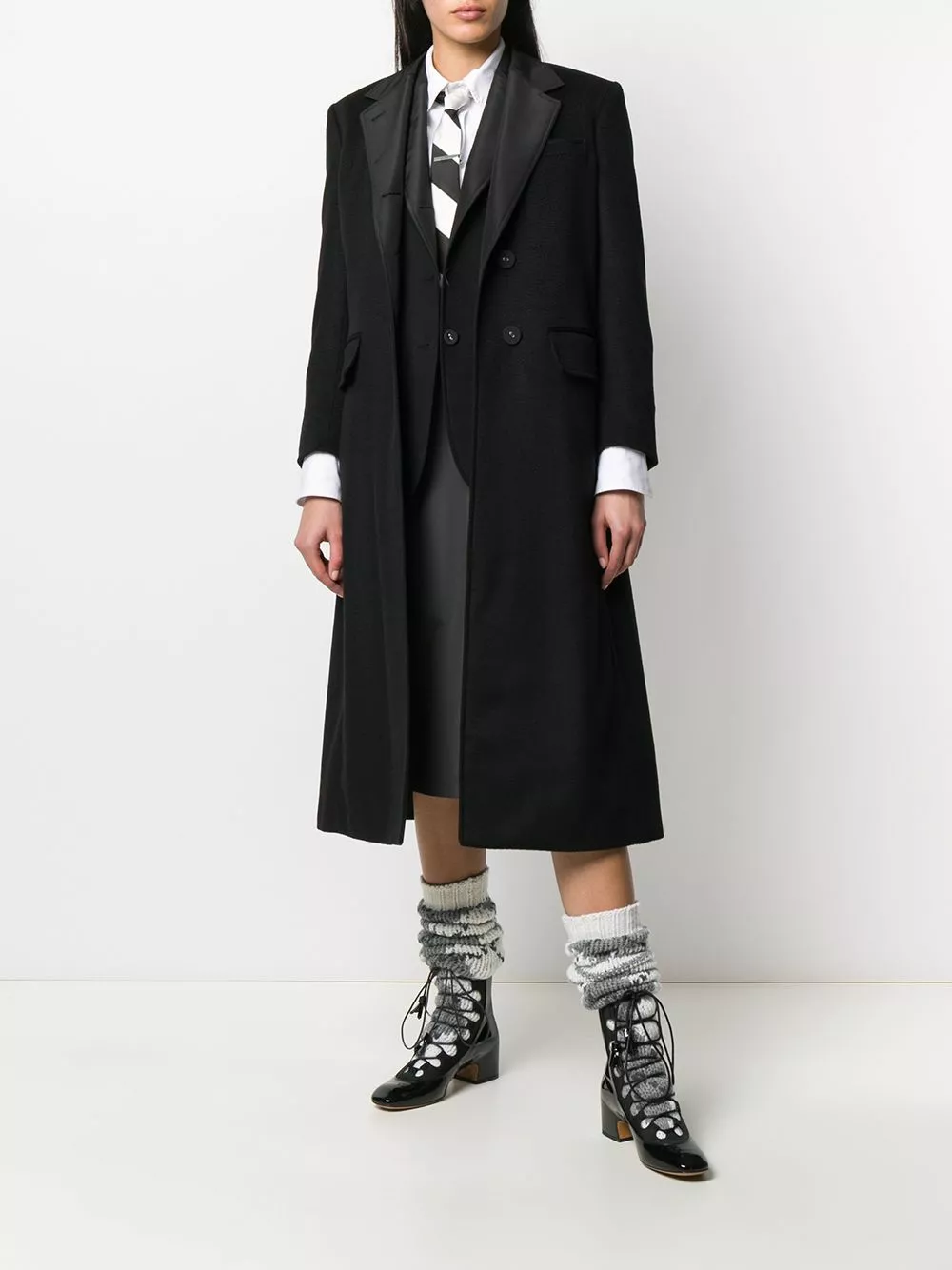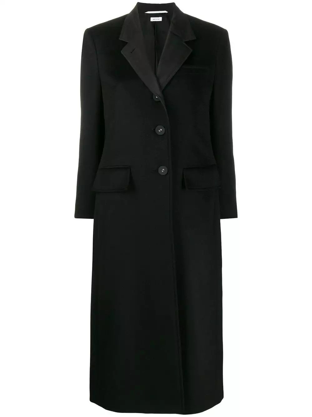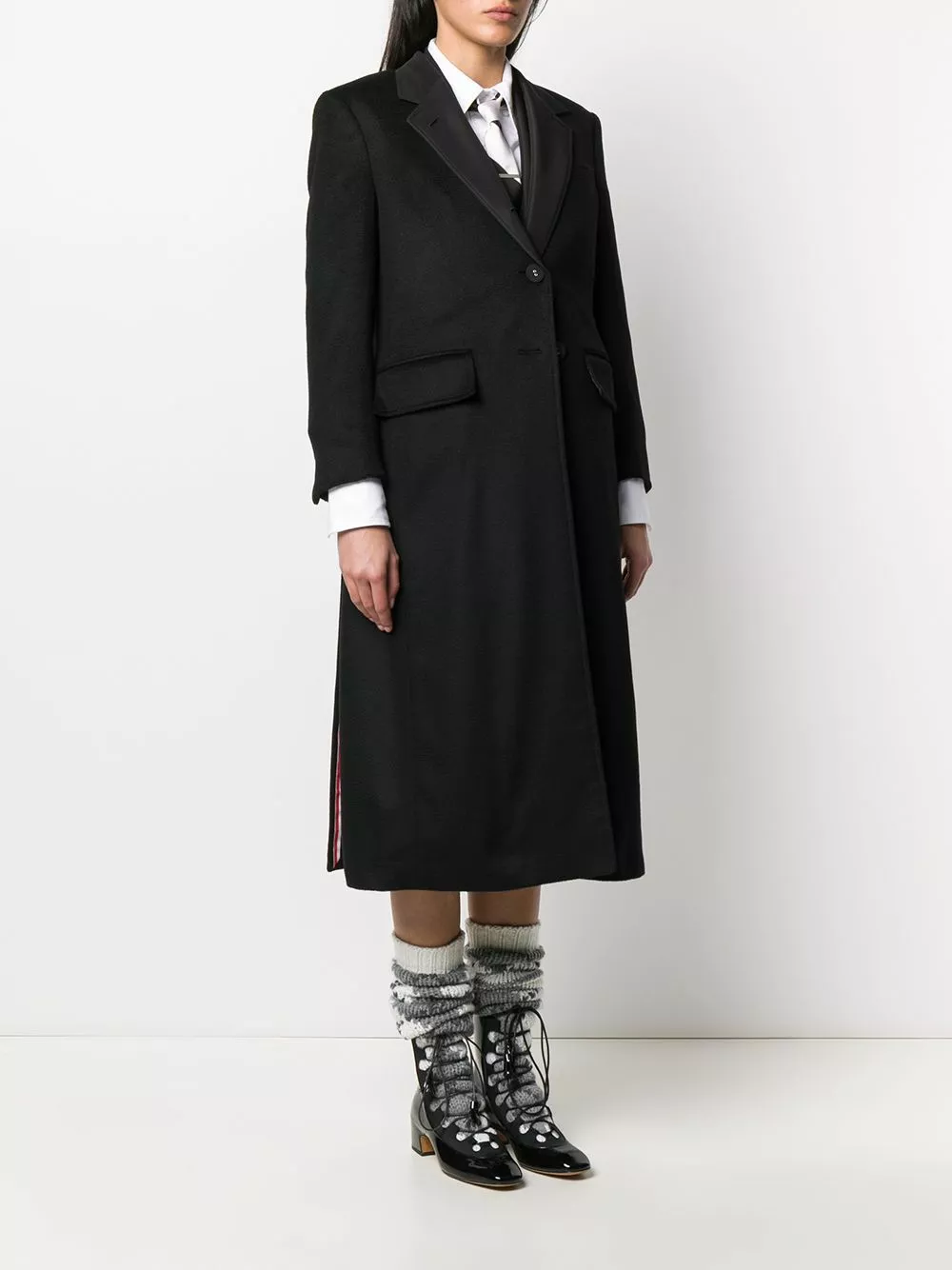 Everybody needs that one item in their wardrobe, that they love more than anything else. For you, that item is this single-breasted overcoat from Thom Browne. The romance starts today! Featuring a collar style, a front button fastening, front pockets, long sleeves, a mid-length, wide lapels, a RWB tab, RWB details and back slits at the hem.