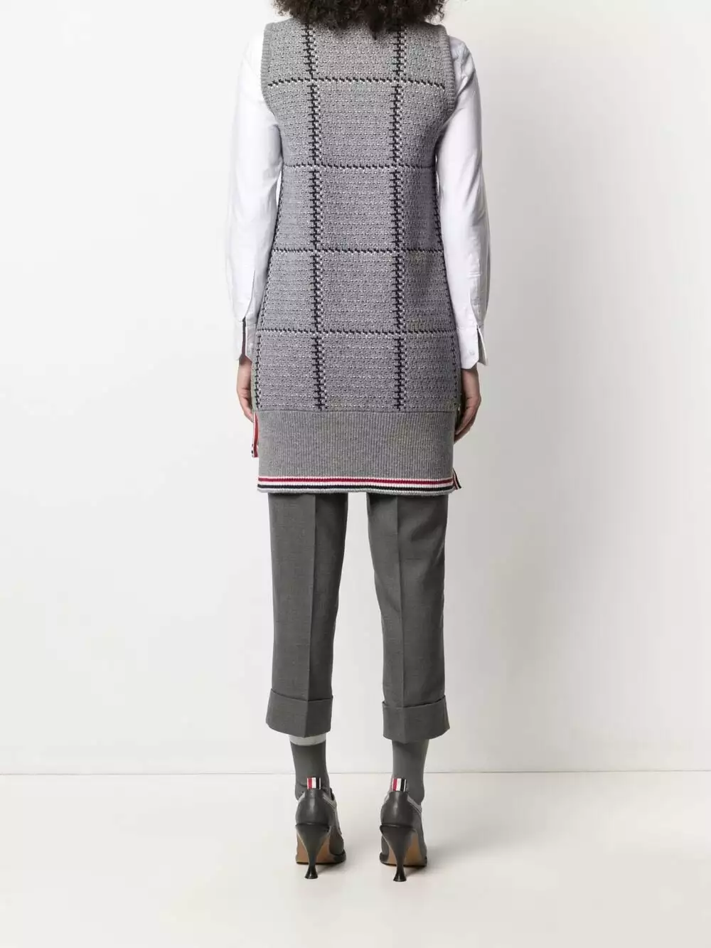 There’s a reason why you turn to Thom Browne every time. Embrace a tonal design in this grey checked cardi-coat. Staying warm never looked so good.