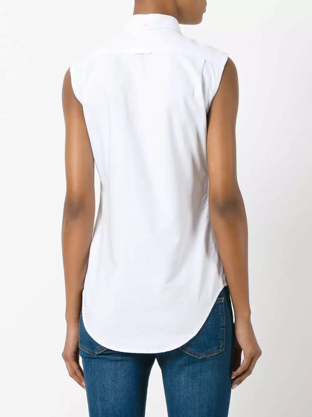100 WHITE Sleeveless Grosgrain Oxford Shirt from Thom Browne.