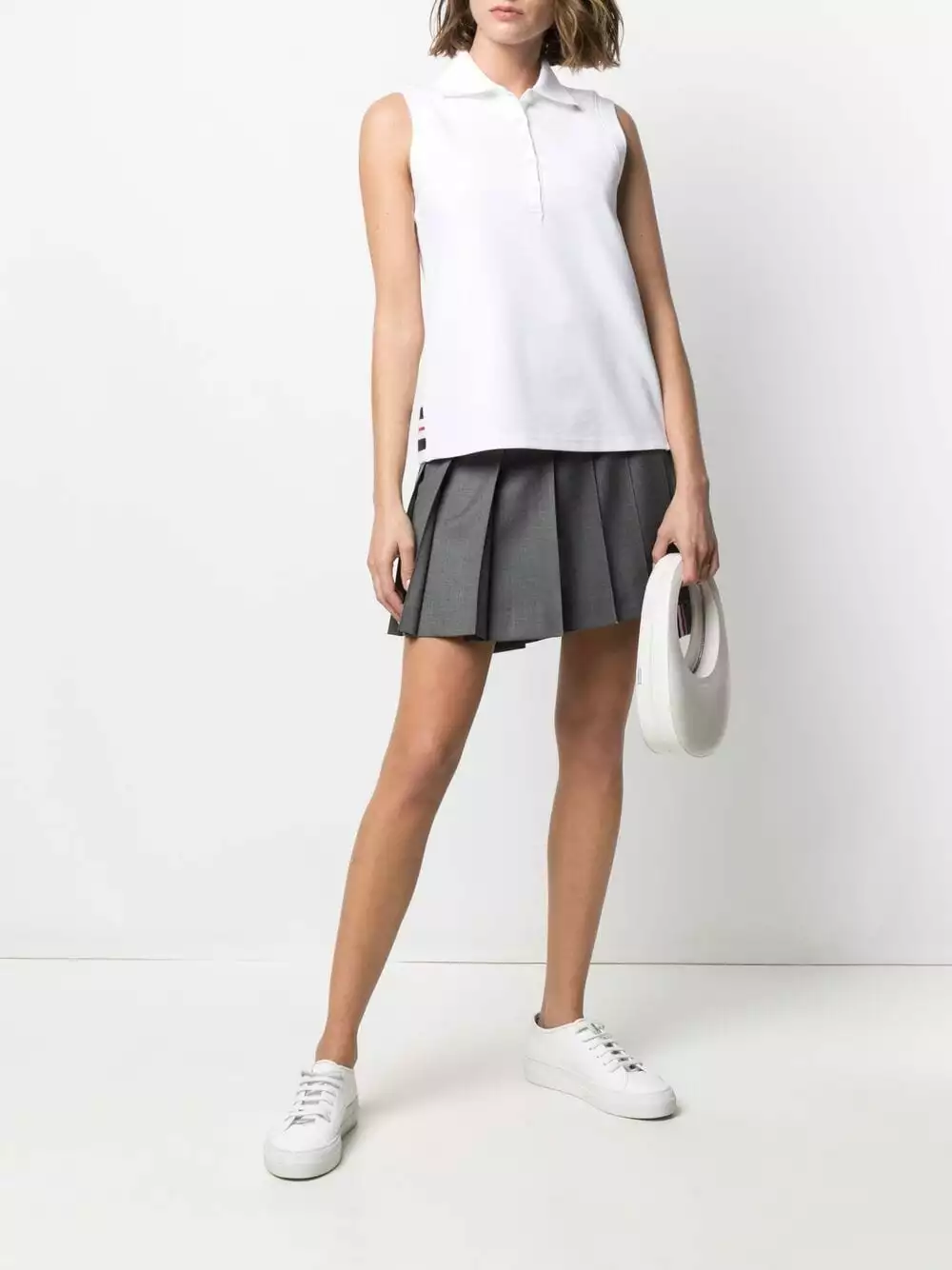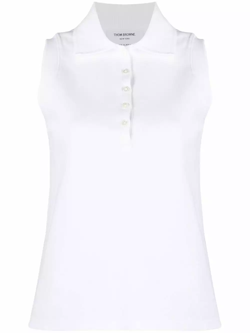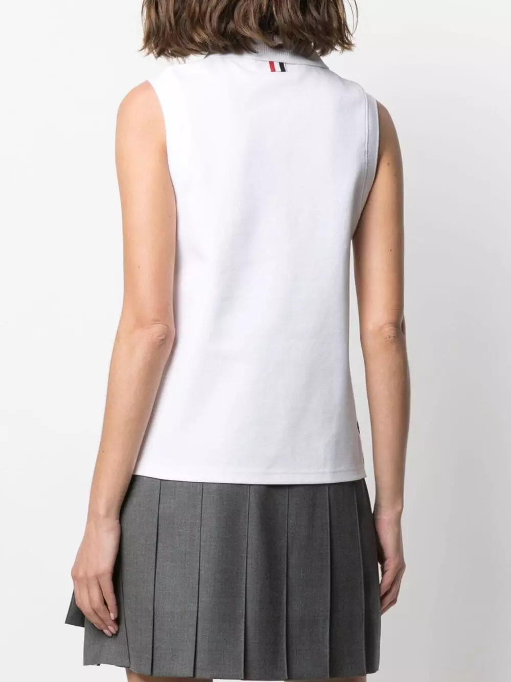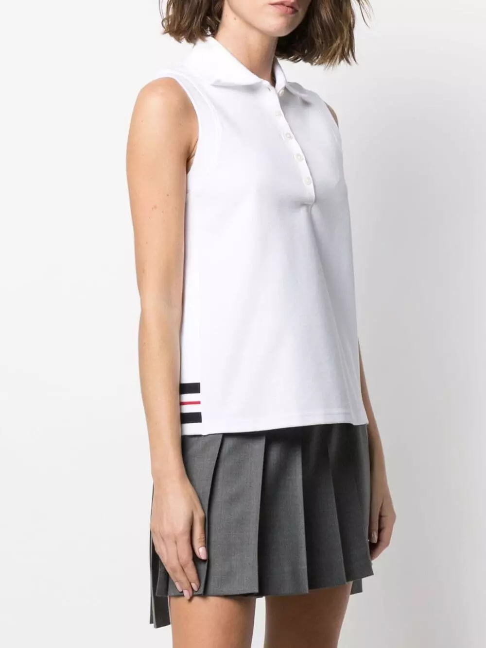 Show off your sporty side. Thom Browne’s sleeveless polo shirt has you covered. You’ve earnt your style stripes with this design.