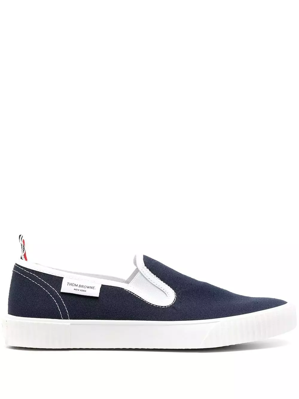 Slip into style, with these slip-on heritage trainers from Thom Browne. The transformative trainers feature a chunky rubber sole, round toe, logo pull-tab at the heel, elasticated side panels, with a logo patch to the side. You can thank us later.