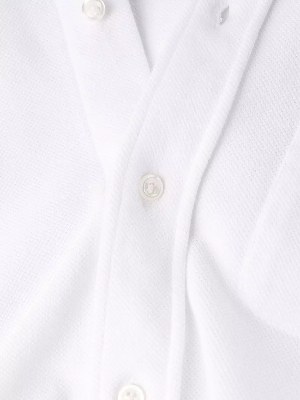 Like T-shirts, one can never have too many white shirts. Crafted in white cotton, this straight-fit piqué shirt from Thom Browne sports a barely visible textured finish. Subtlety is key. Featuring a button-down collar, long sleeves, button cuffs, a chest pocket, a front logo patch, a curved hem and a straight fit.