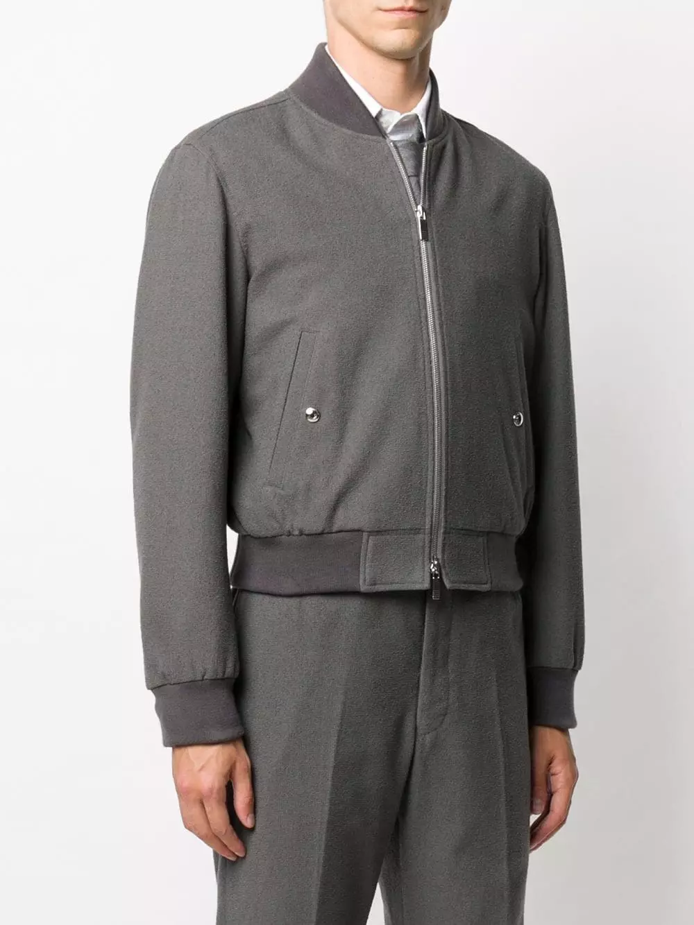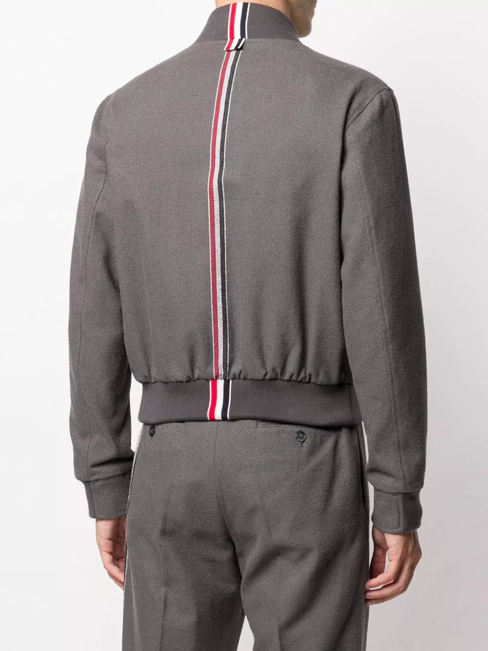 Lightweight and comfortable. This stripe zip-up jacket from Thom Browne is all it takes to make sure your outfit is sure to keep you warm, without sacrificing on style. The best of both worlds.