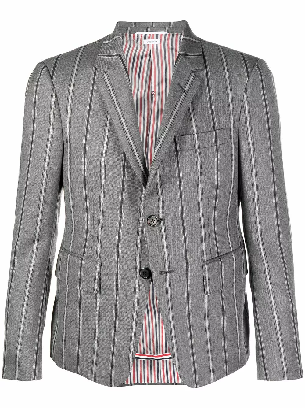 Stripe up your life. In a vertical striped pattern and single-breasted fastening, this blazer from Thom Browne is here to inject some fun into your formalwear. What are you waiting for?