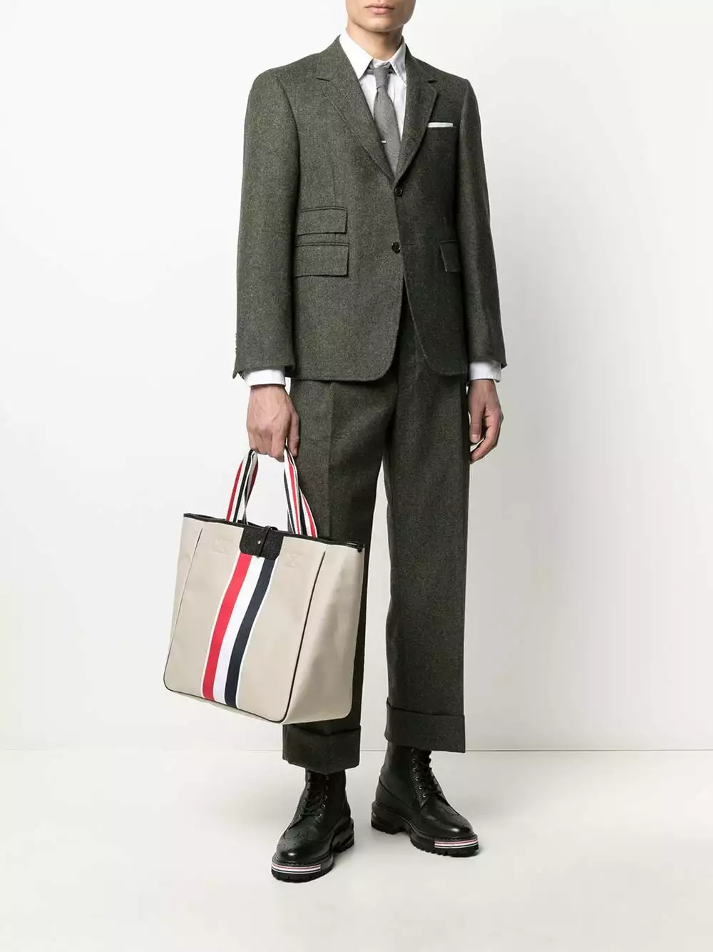 There’s plenty of space inside Thom Browne’s canvas tote bag – you won’t need to leave anything at home. It’s as practical as it is stylish, so go ahead and earn your fashion stripes.