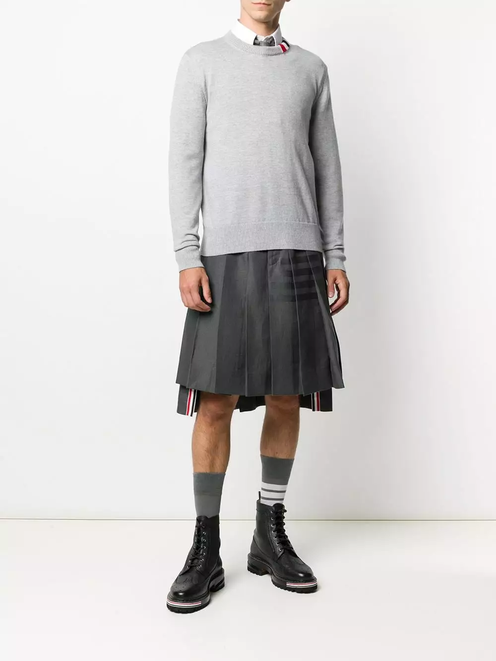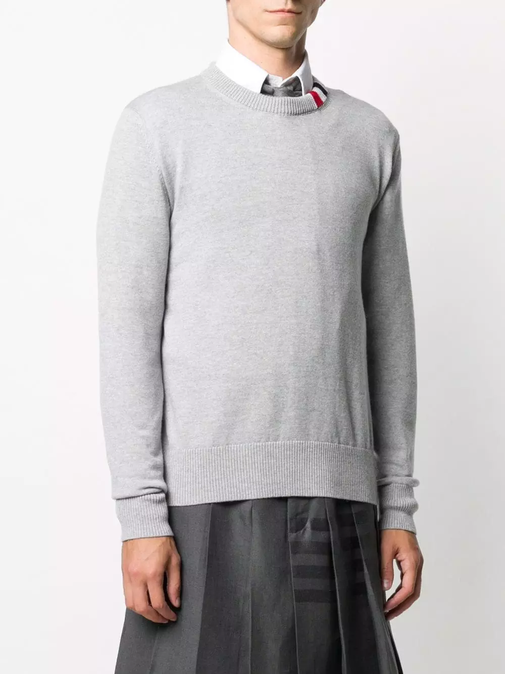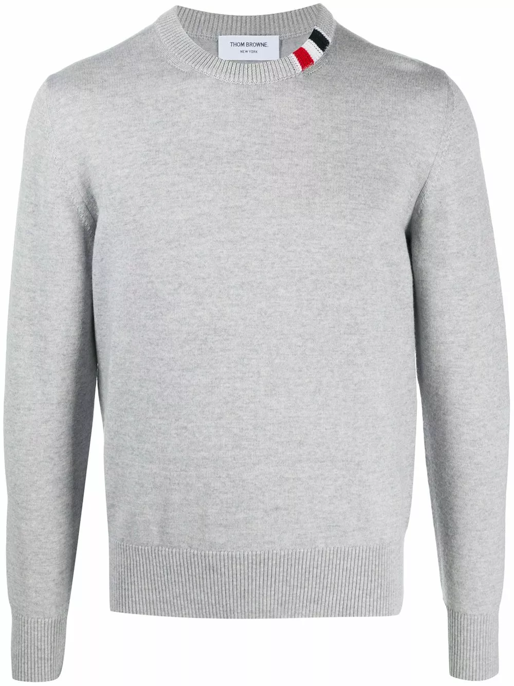 Looking to upgrade your knitwear this season? Thom Browne’s relaxed fit merino jumper is the one for you. Just look at the tri-colour trim.