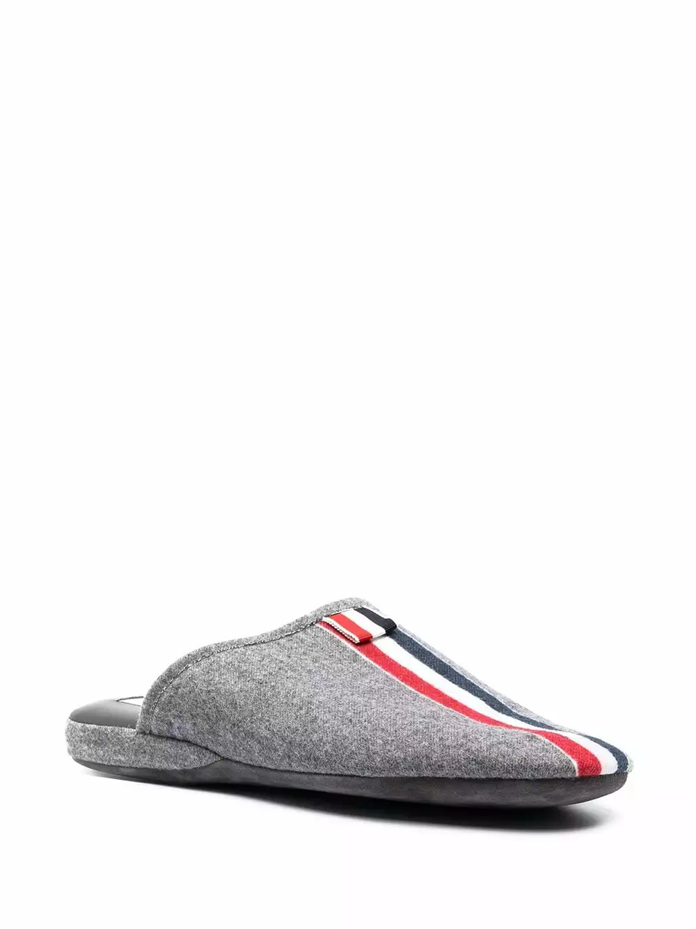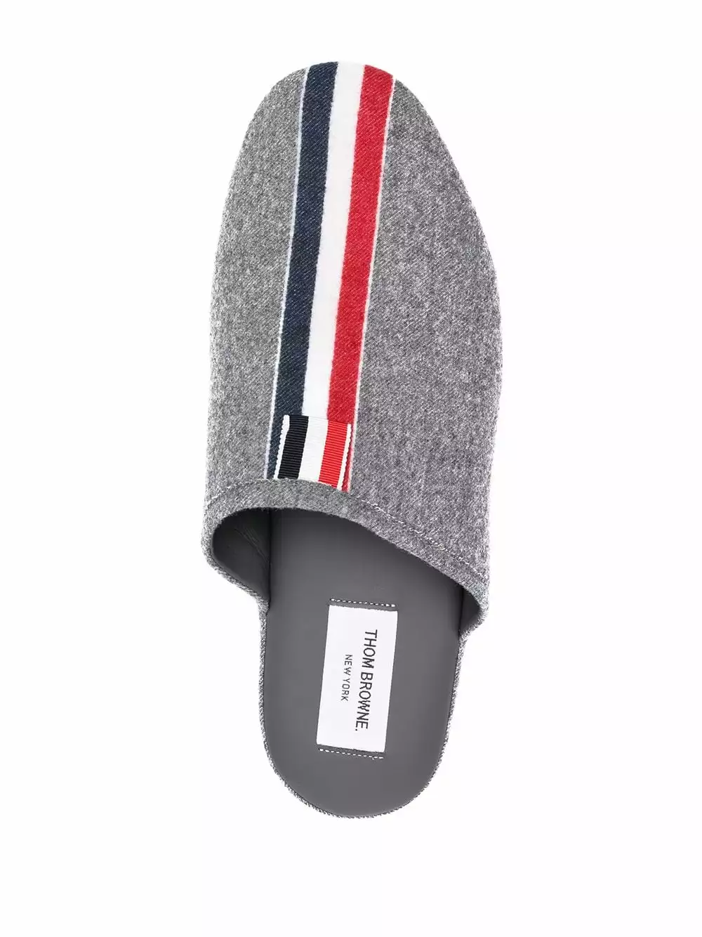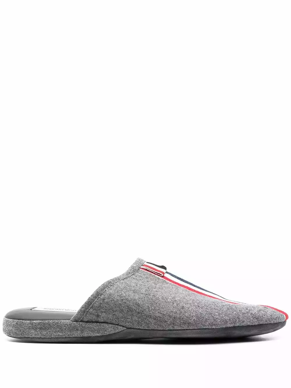 Earn your fashion stripes with Thom Browne’s slippers. Made from plush wool woven with cashmere, they’re tipped with the brand’s signature striped grosgrain trim. Low-key days at home have never looked so good.