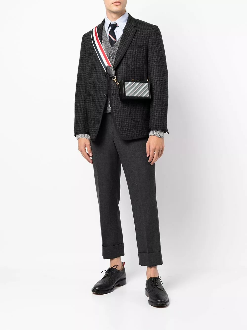 This isn’t your regular messenger bag. Thom Browne’s boxy silhouette feels like a miniature briefcase that you can effortlessly carry cross-body – no hassle involved. Try something new.