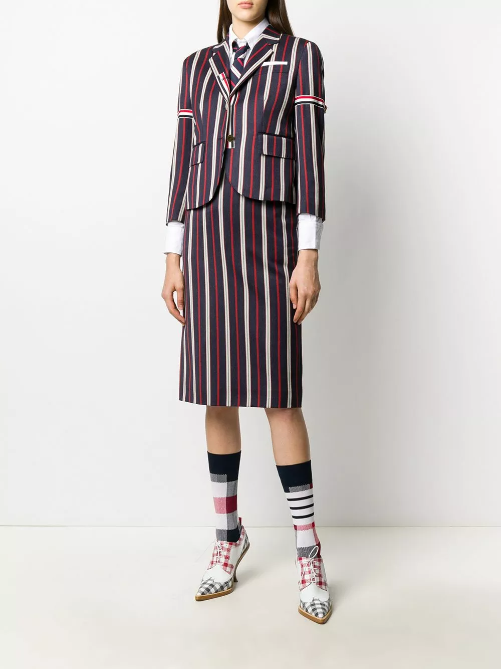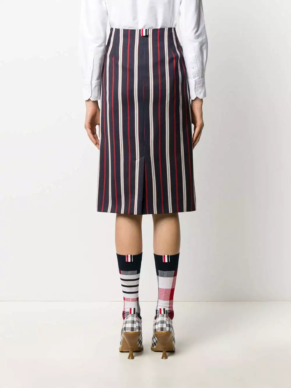 You mix comfort, femininity and add in a sprinkle of refined elegance. What do you get? Definitely this striped pencil skirt from Thom Browne. Made from a soft blend of cotton and wool, this high-waisted skirt is equal parts comfortable and polished-looking. Office-ready.