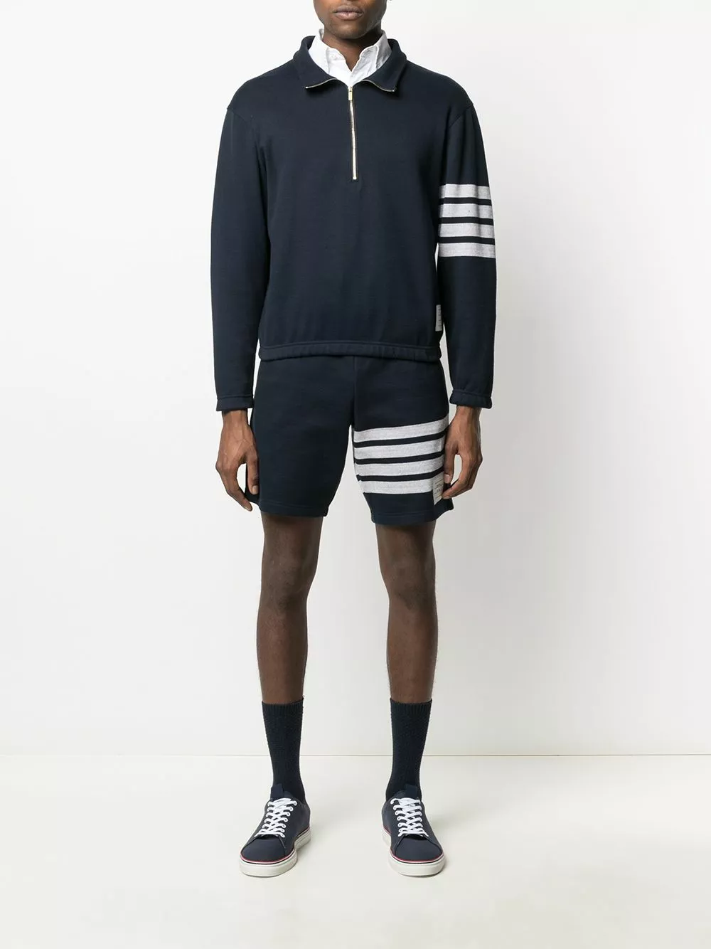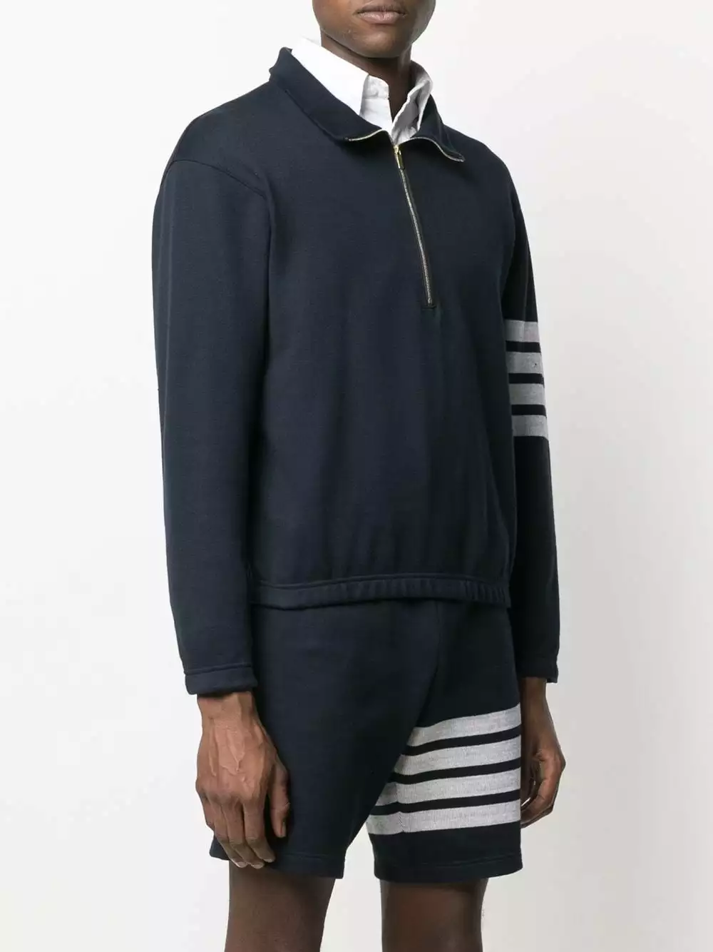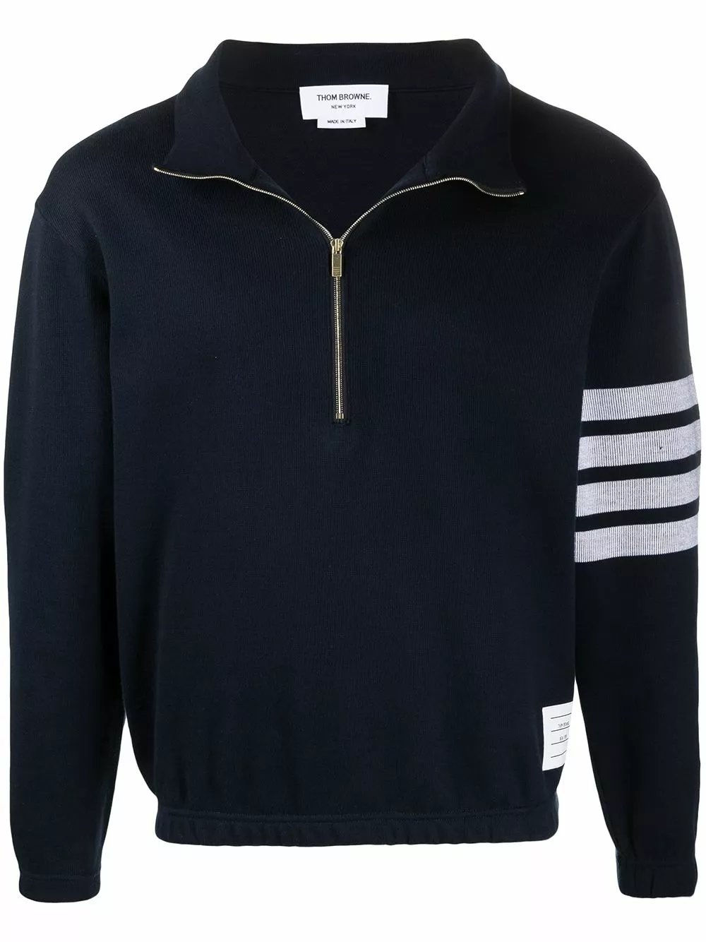 Get a move on. This Thom Browne half-zip fleece is ready to get physical in the freshest of weather with a soft cotton construction to keep you warm. Zip in and head on out.