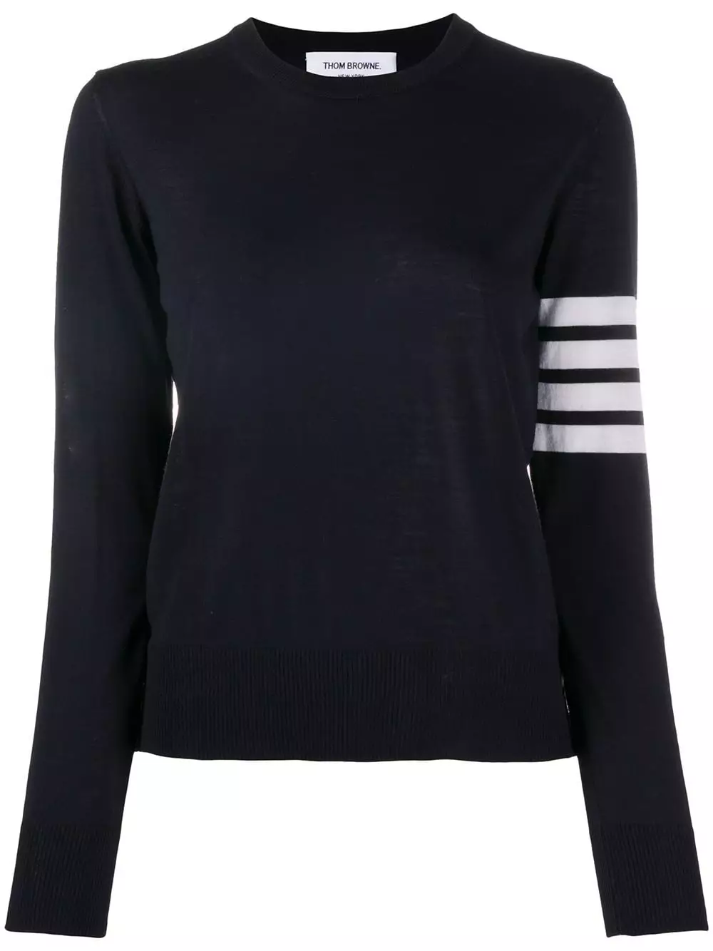 Four stripes are better than none. Crafted from merino wool, this Thom Browne jumper is the perfect solution for keeping the cool-air chills at bay, in style.