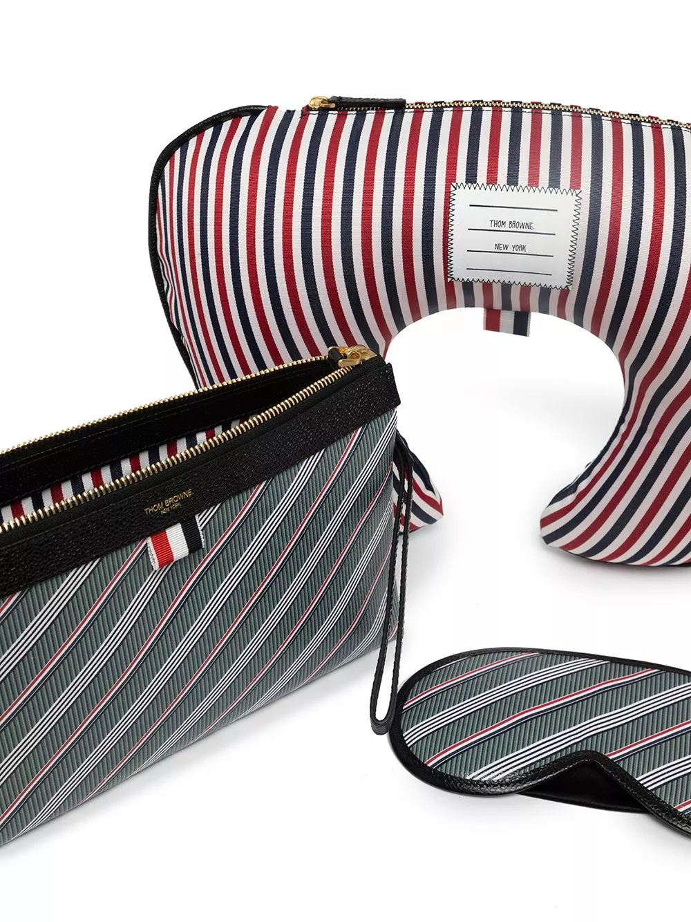 Take Thom Browne with you to your next big adventure. This travel pack includes the iconic RWB stripe, making sure your style is intact, regardless of the altitude. Safe travels.