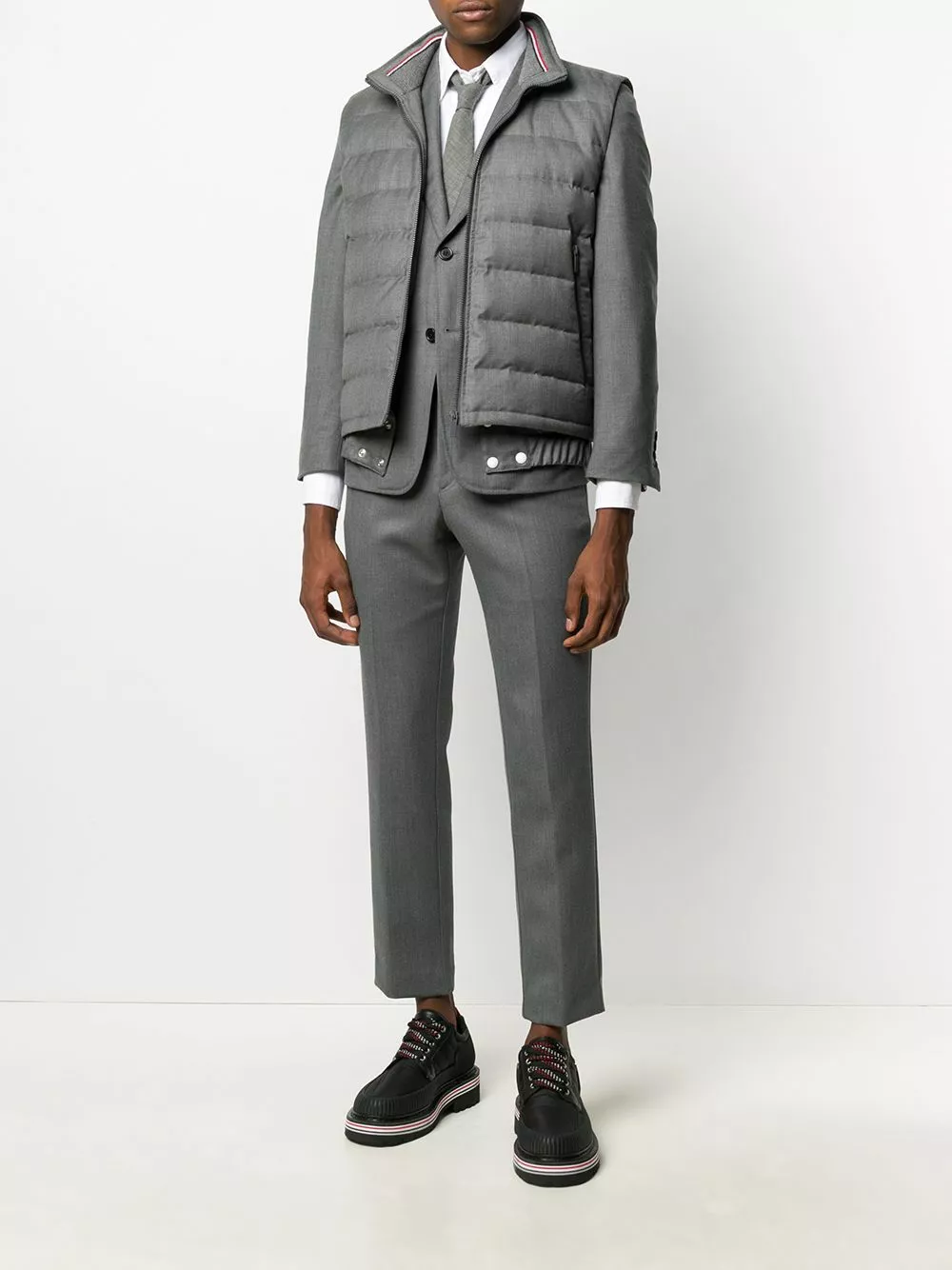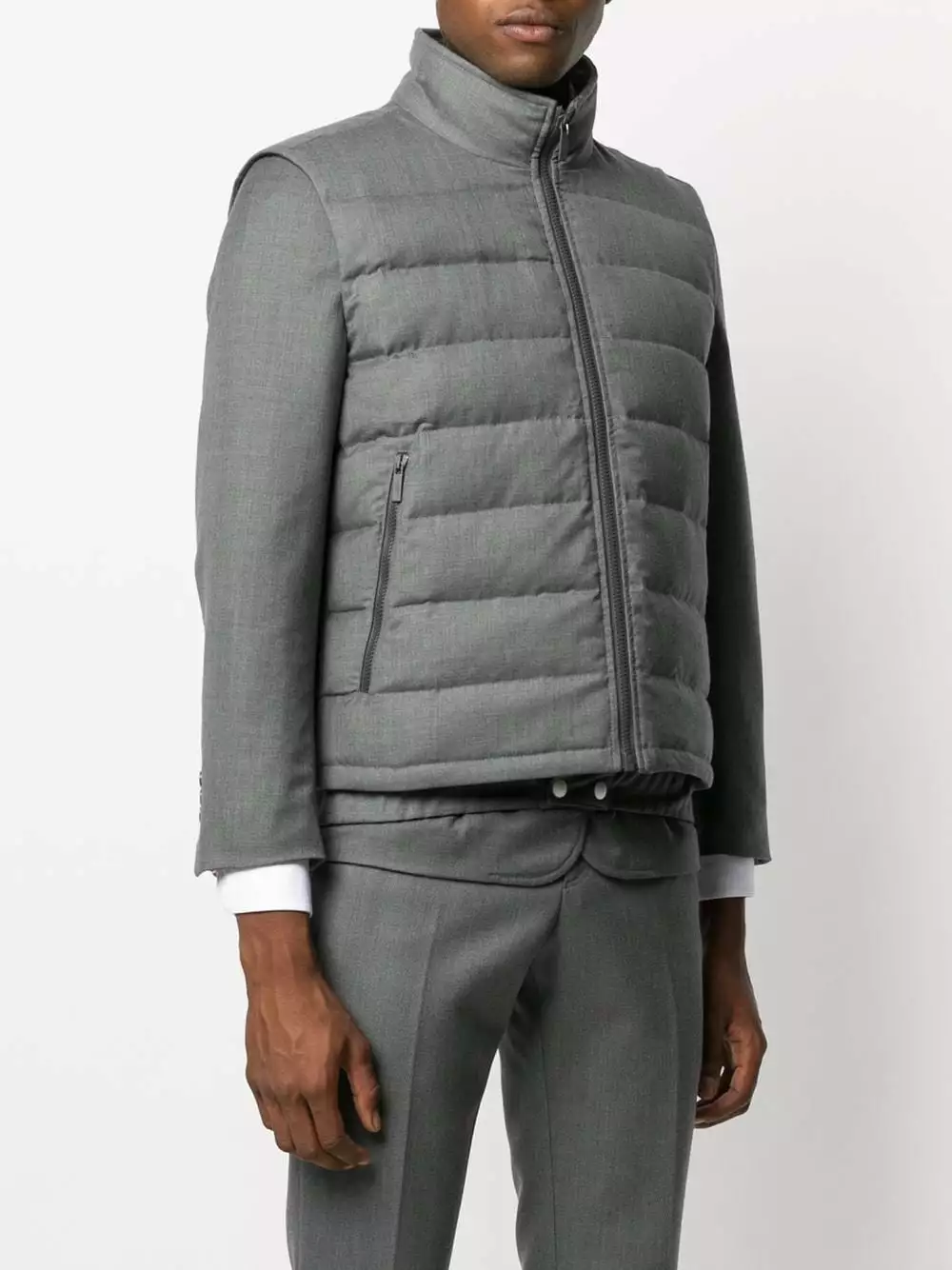 Have you said “gilet” lately? It’s got such a nice ring to it, try it out. Next, try this out: “Thom Browne gilet with a down filling”. Ooh, that sounds even better.