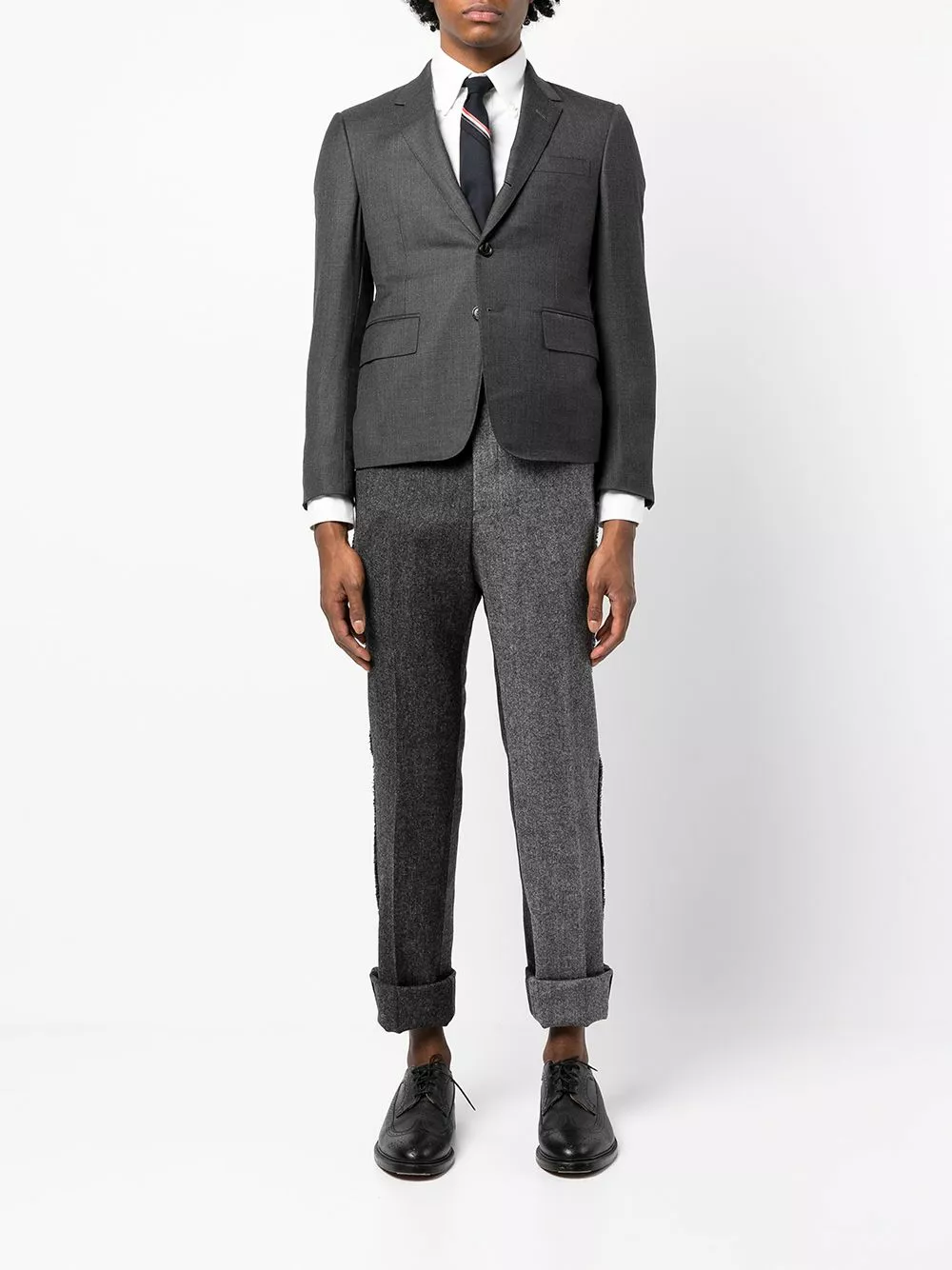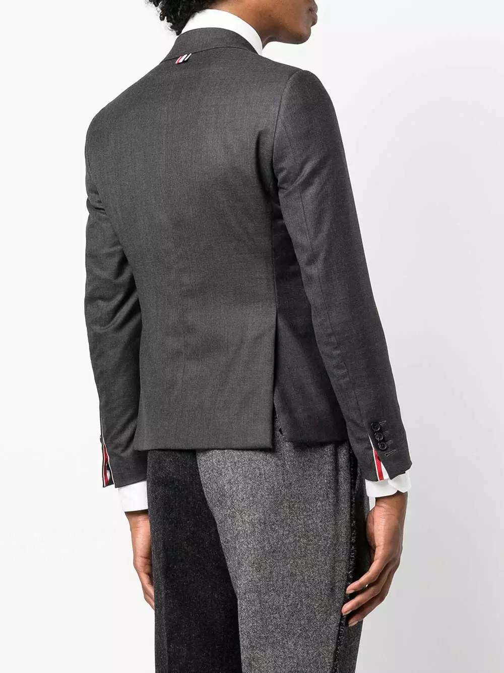 Shrunken tailored silhouettes are synonymous with Thom Browne. This is reflected in the design of this Super 120s single-breasted blazer, which has cropped sleeves.