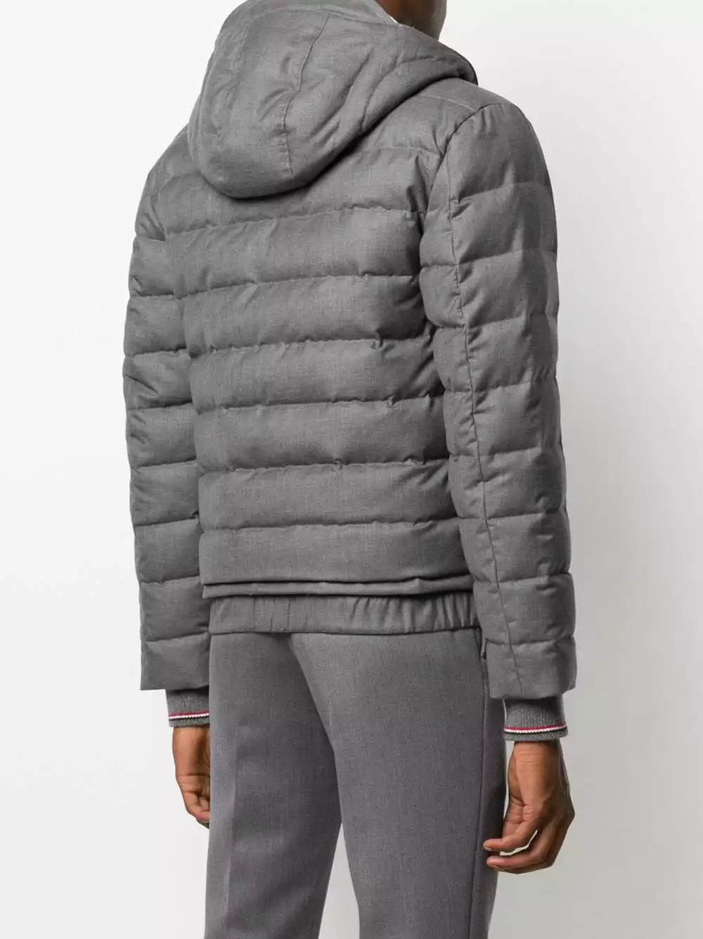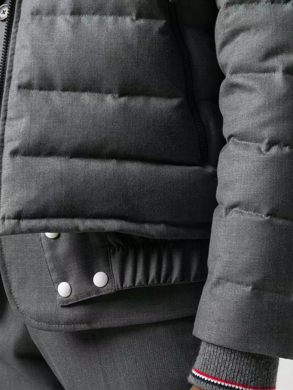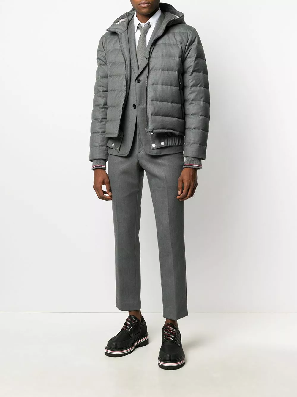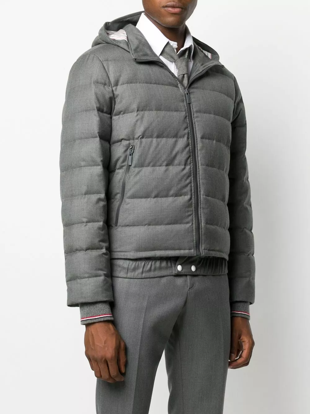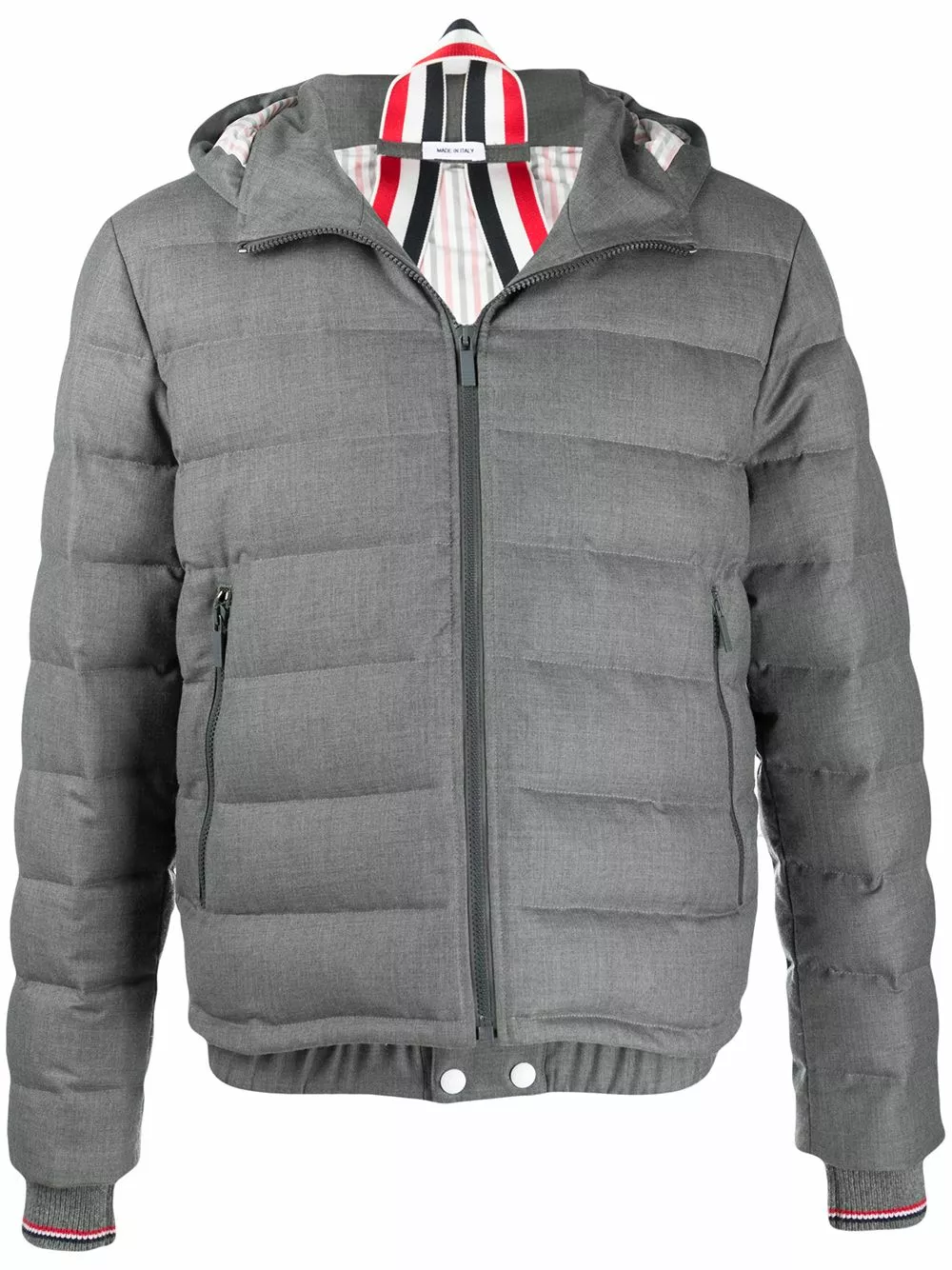 Look at this toasty-looking Thom Browne ski jacket: quilted, filled with feathers and goose down, knitted cuffs. Needless to say, we’re ready to put this on and pretend to know how to ski.