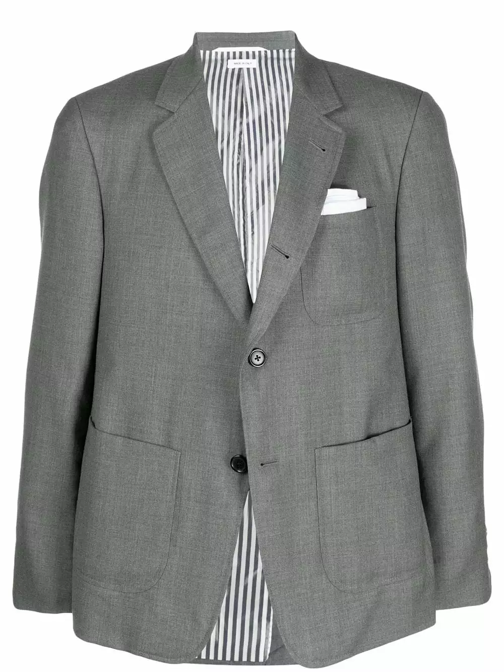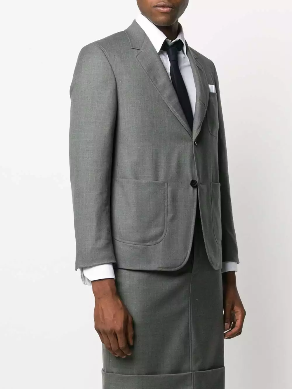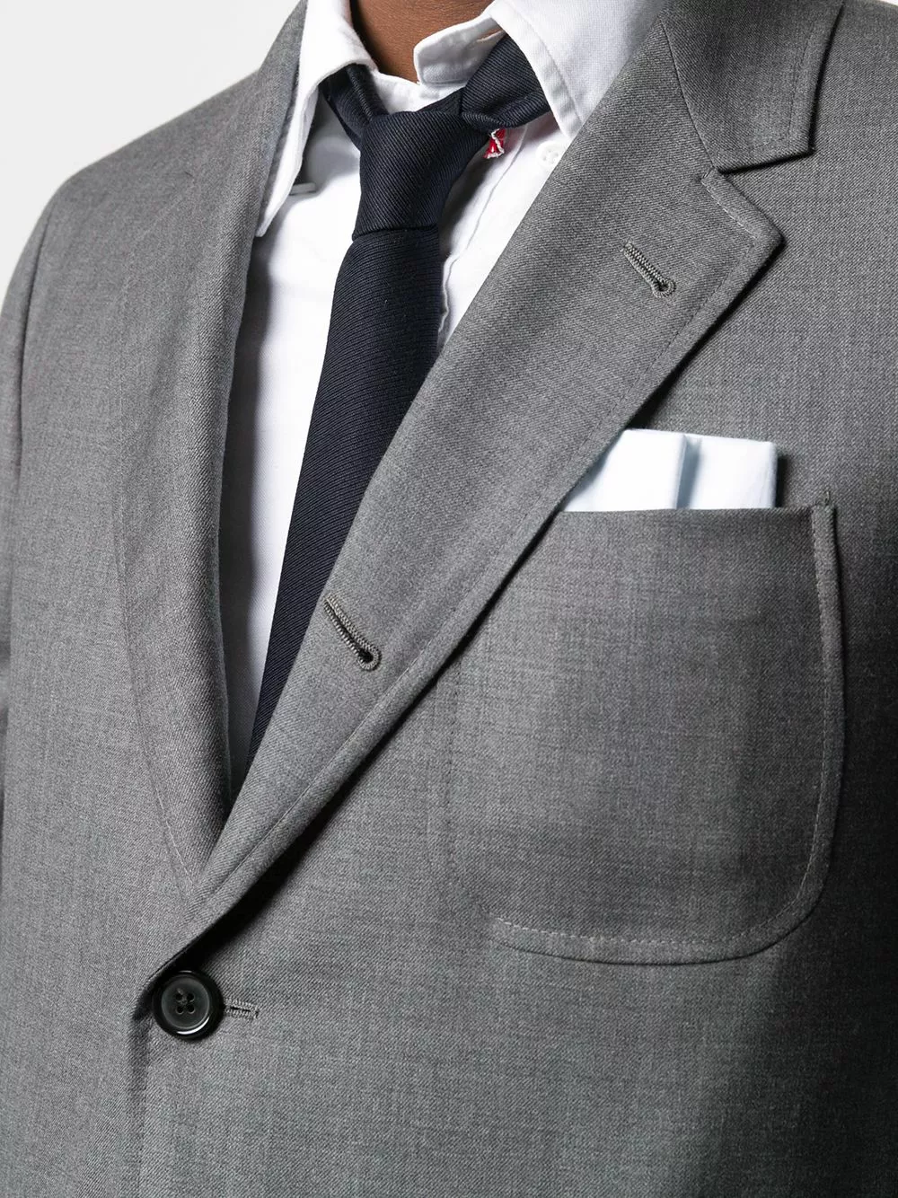 One thing we love about classic workwear: those huge pockets you get on everyday jackets. Apparently, the folks at Thom Browne are huge fans as well, because they’ve reimagined a tailored twill blazer to have these ultra-functional pockets.