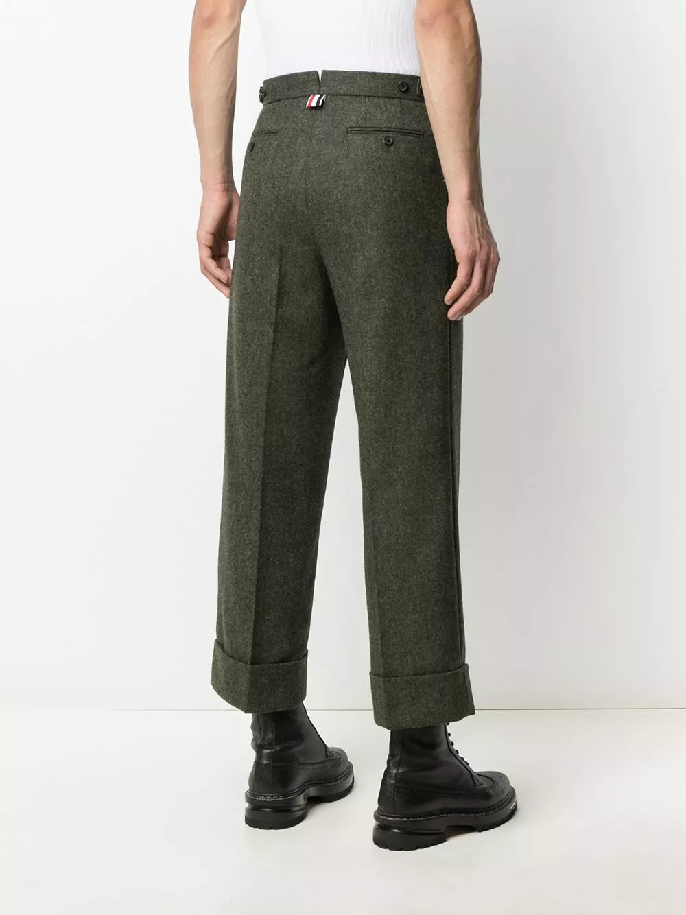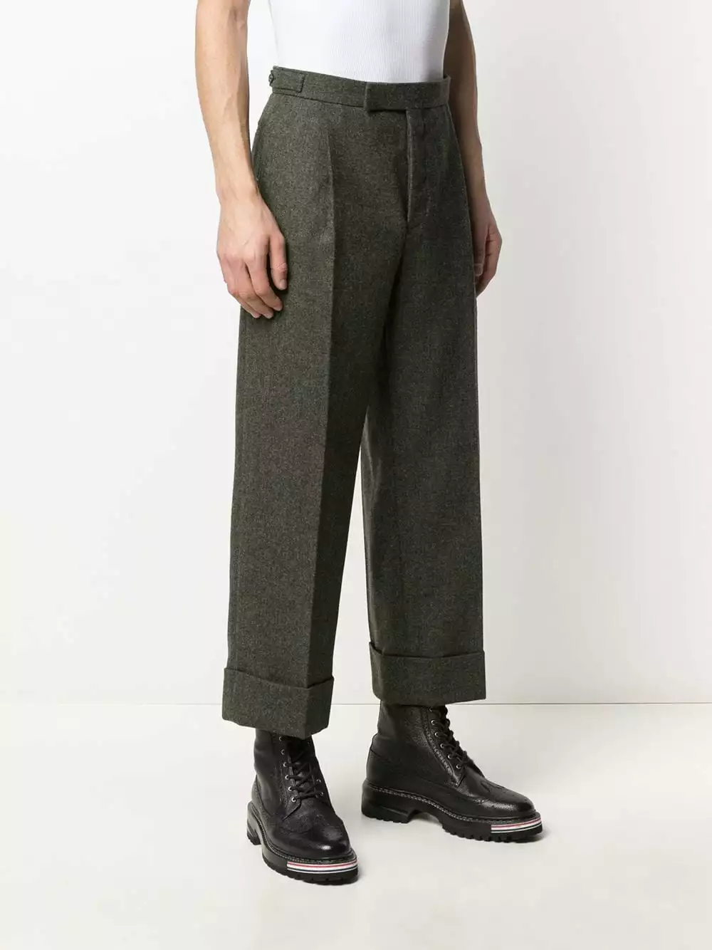 Tinker, tailor, satorial, style. In a sleek tailored cut, the season-defining trousers from Thom Browne are here, boasting a medium grey hue and straight-leg. Get tinkering.