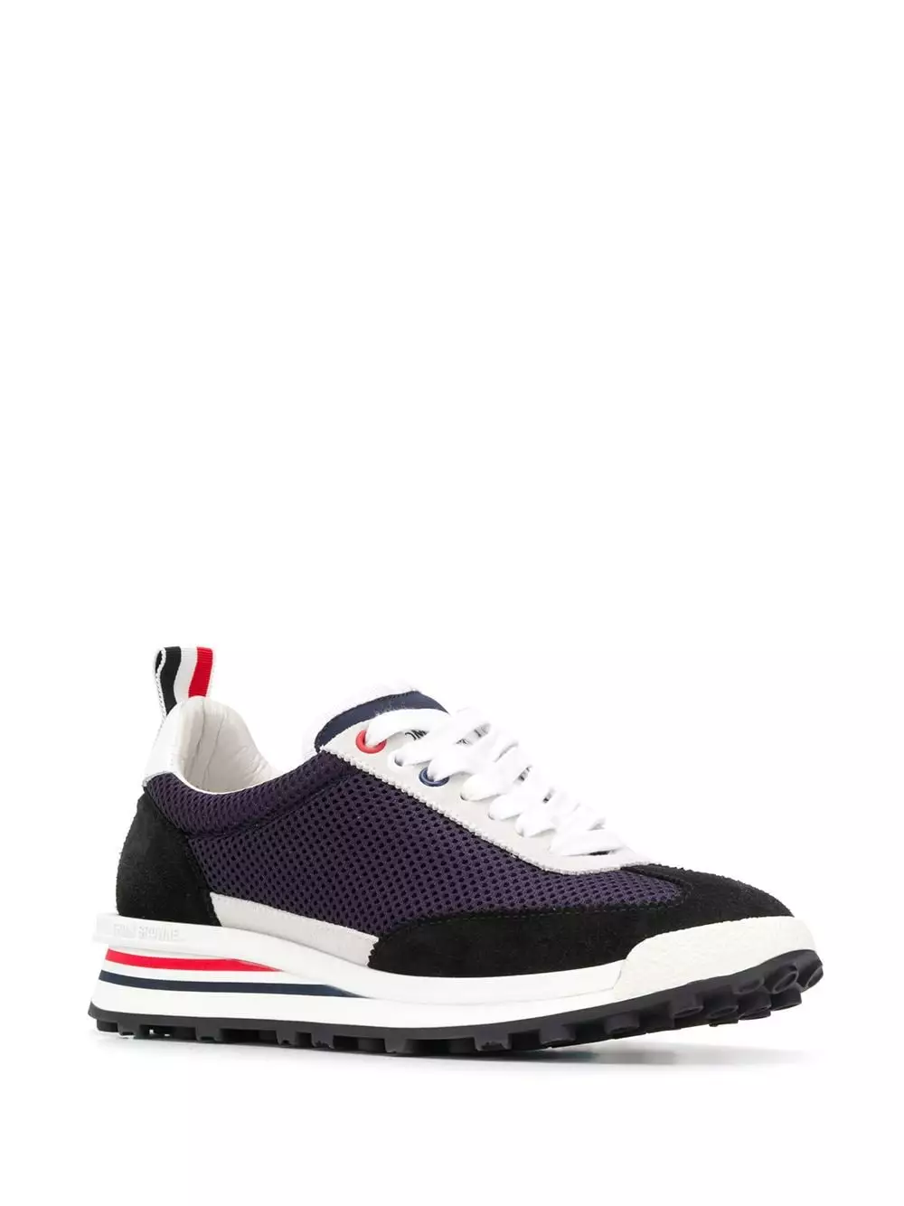 We know you’re constantly on the go. So make sure you’re ready for the busy day ahead with these Tech Runner tessuto mesh sneakers from Thom Browne. If your feet could speak, they’d thank you for this functional footwear. Featuring mesh panels, suede panels, a lace-up front fastening, a round toe and an RWB tab.