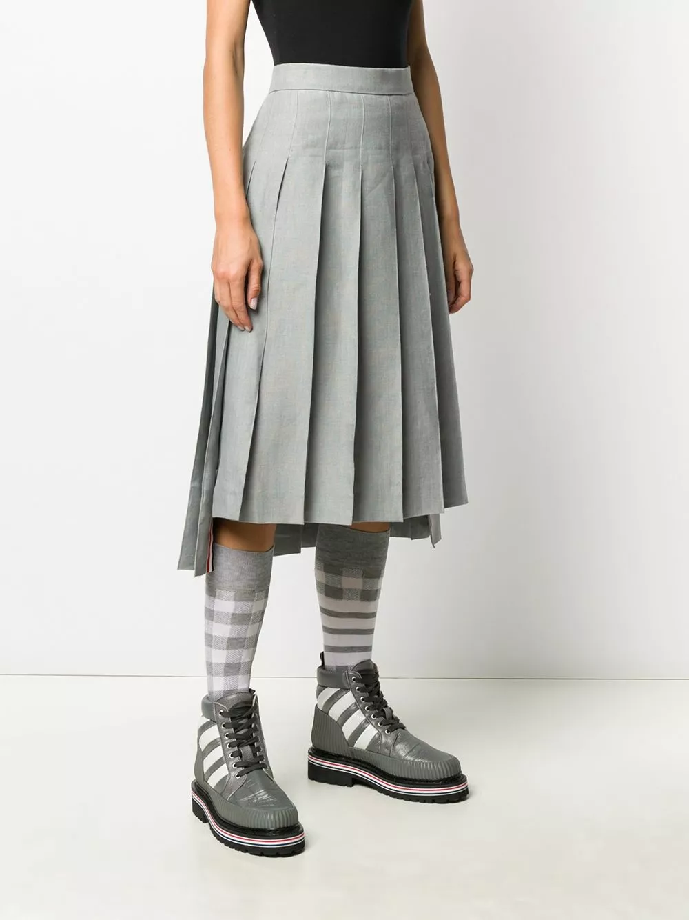 Thom Browne tonal 4-Bar pleated skirt
