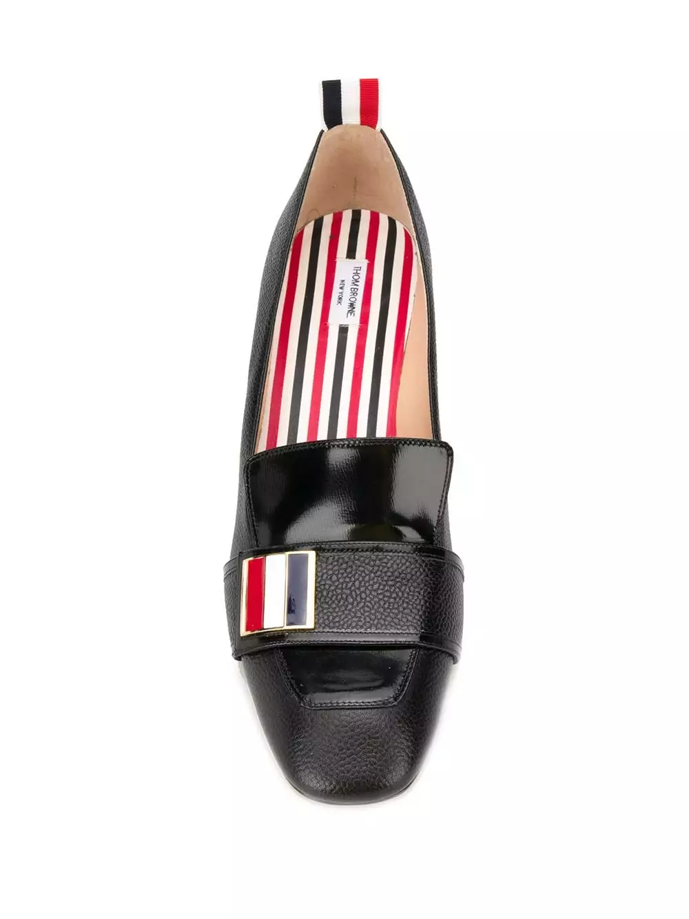 Do you know that cliché saying, “behind every successful woman is herself”? Well, it’s not that we don’t agree, but we believe there’s also a pair of these black calf leather tricolour enamel strap loafers from Thom Browne involved. Touché! Featuring a square toe, a branded insole, a pull tab at the rear, a low block heel, a slip-on style and a tricolour enamel plaque to the front.