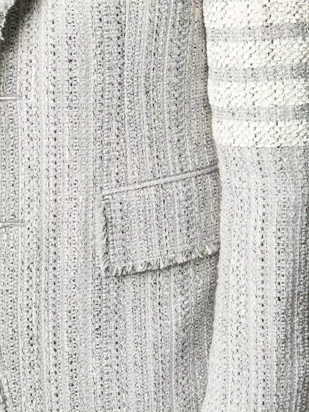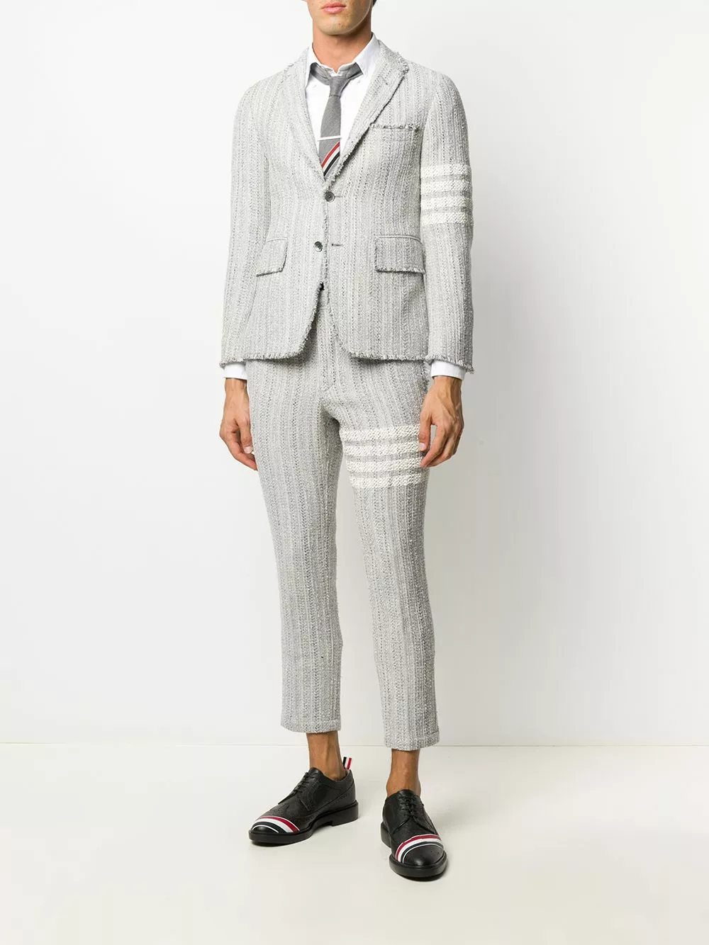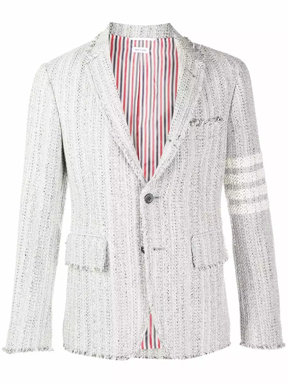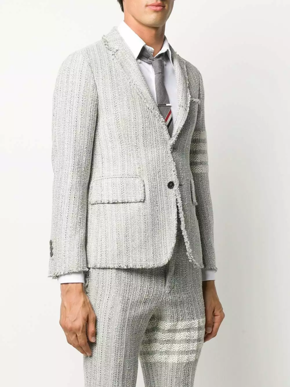 When it comes to blazers, versatility is key. Made from light grey tweed, this single-breasted blazer from Thom Browne can go from a business meeting to a casual party with friends. You choose the best.
