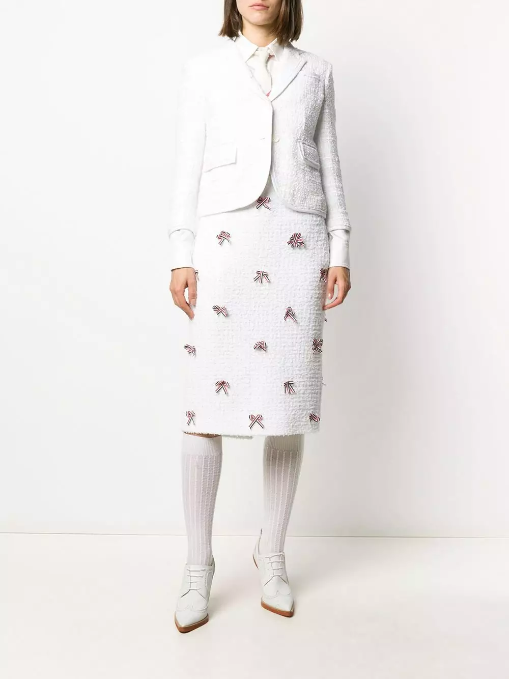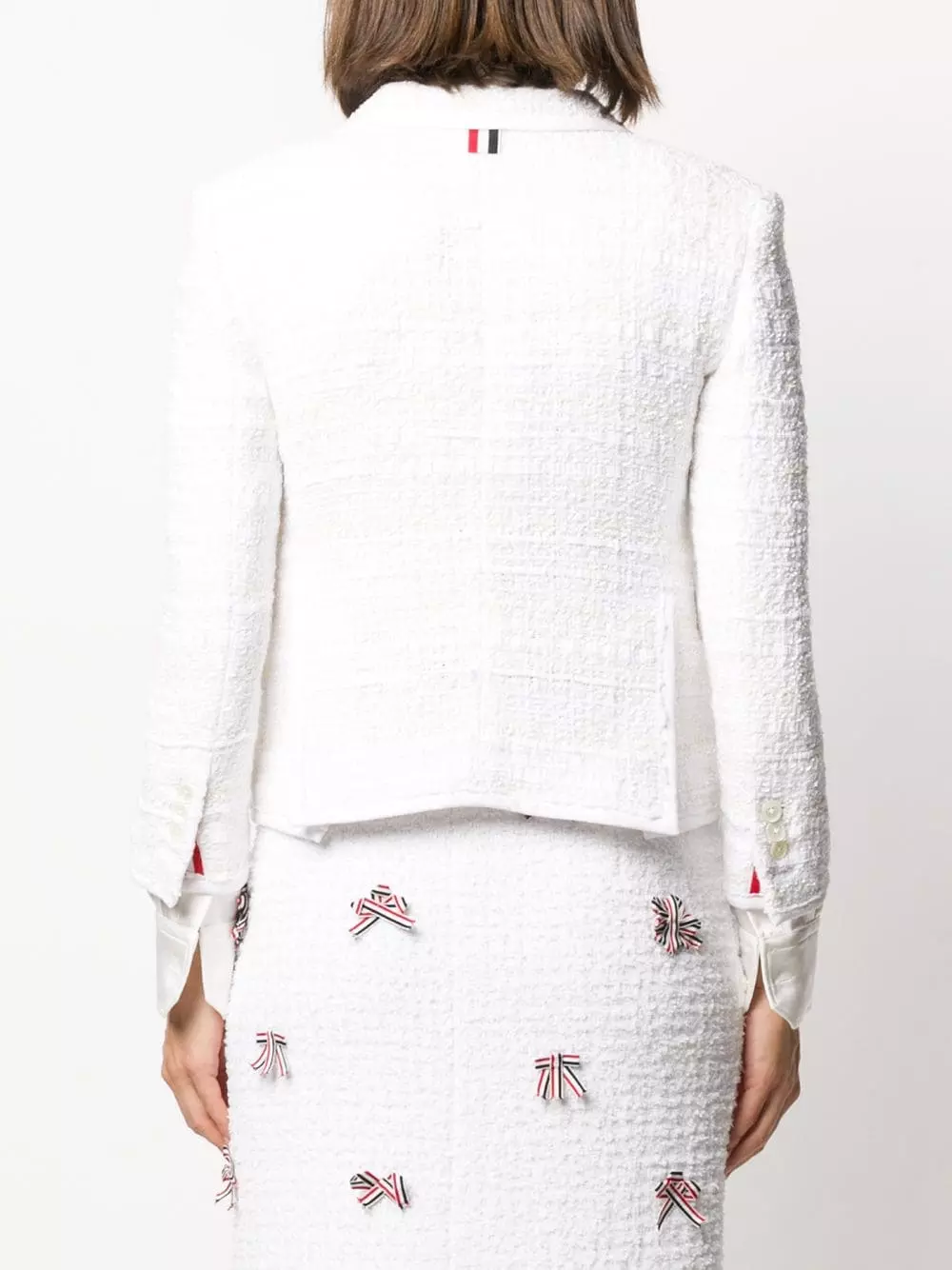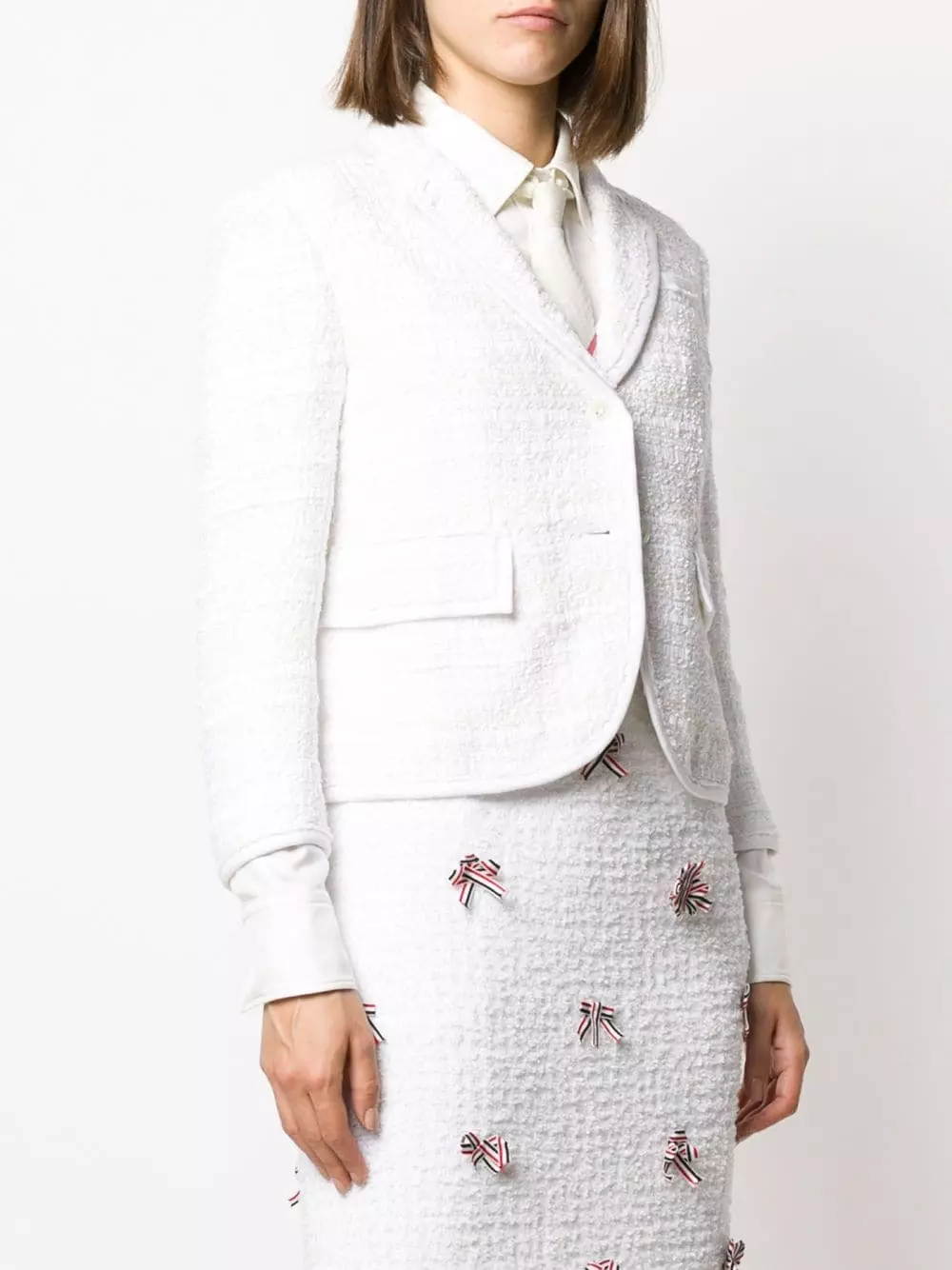 When it comes to blazers, versatility is key. Made from white tweed, this Thom Browne can go from the office to a special event. Chic and easy.
