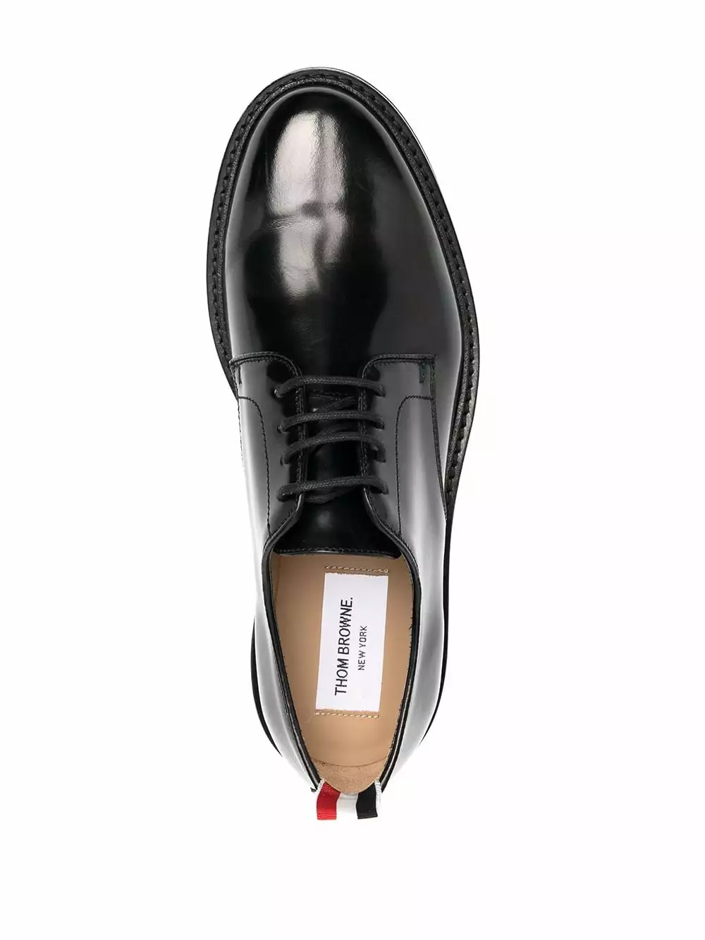 Attention! These uniform lace-up loafers are not only polished within an inch of their life, but are also stylishly utilitarian. Thom Browne has done it again.
