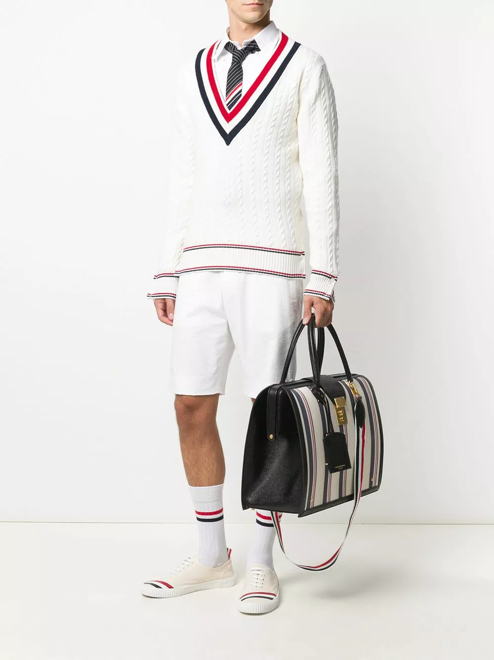 Don’t let the cold be an excuse for not waking up and enjoying the day. This cashmere Thom Browne jumper is the motivation you need to go out. Comfy and always stylish. What else?