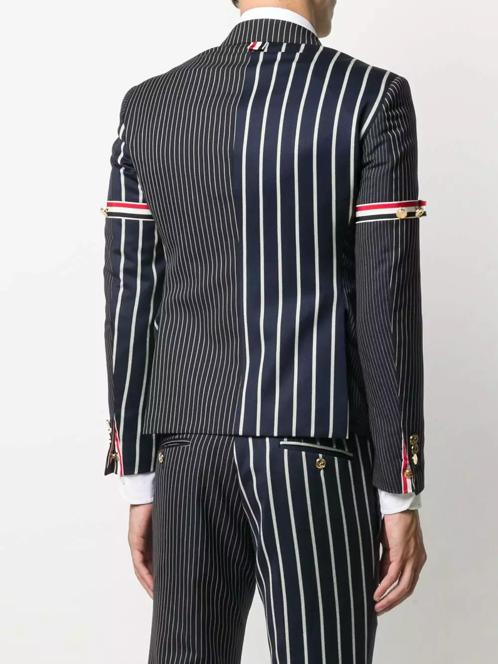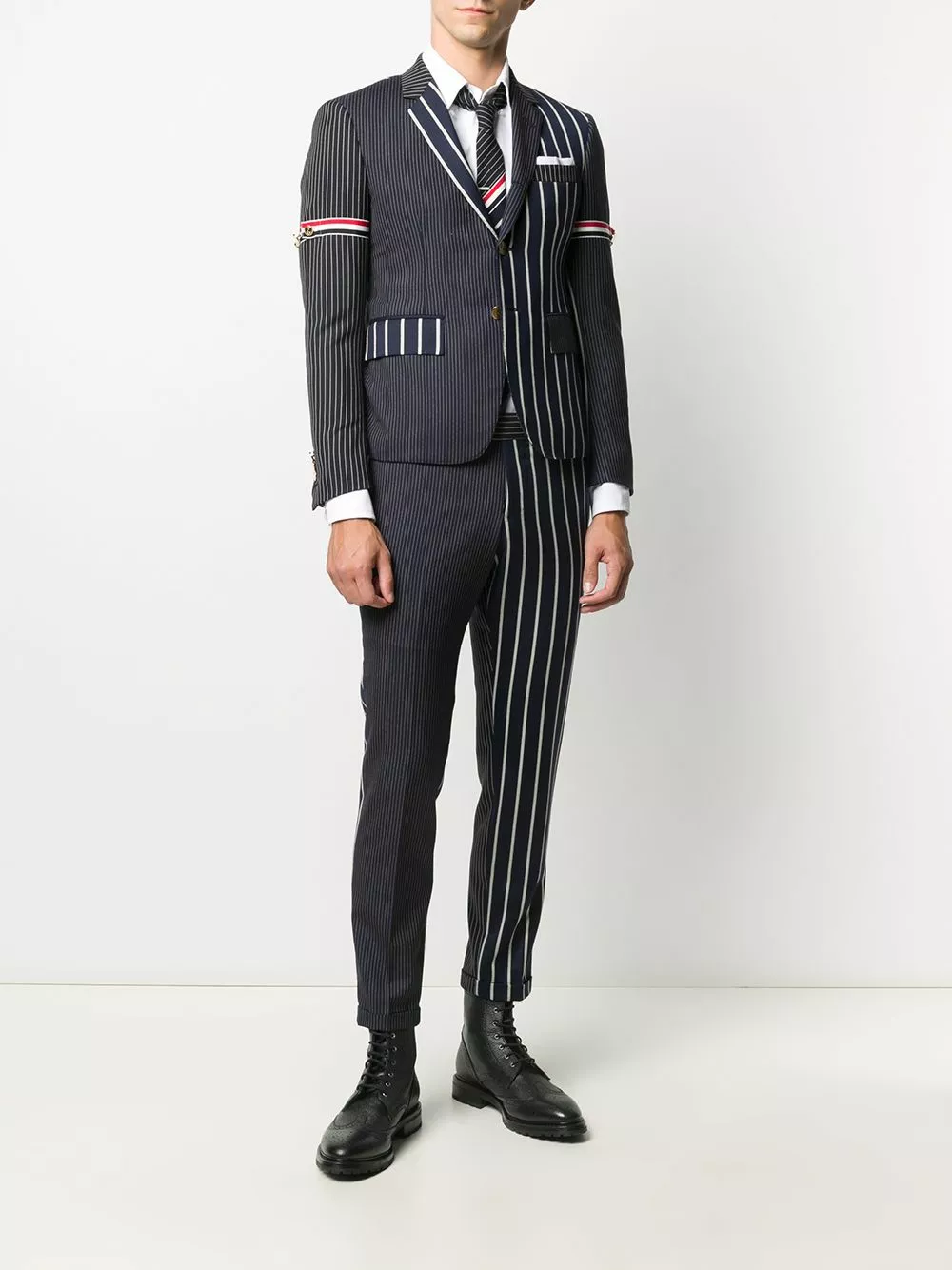 It’s all about the stripes. And the proof is in this asymmetric sports blazer from Thom Browne. Make your outerwear the focal point.