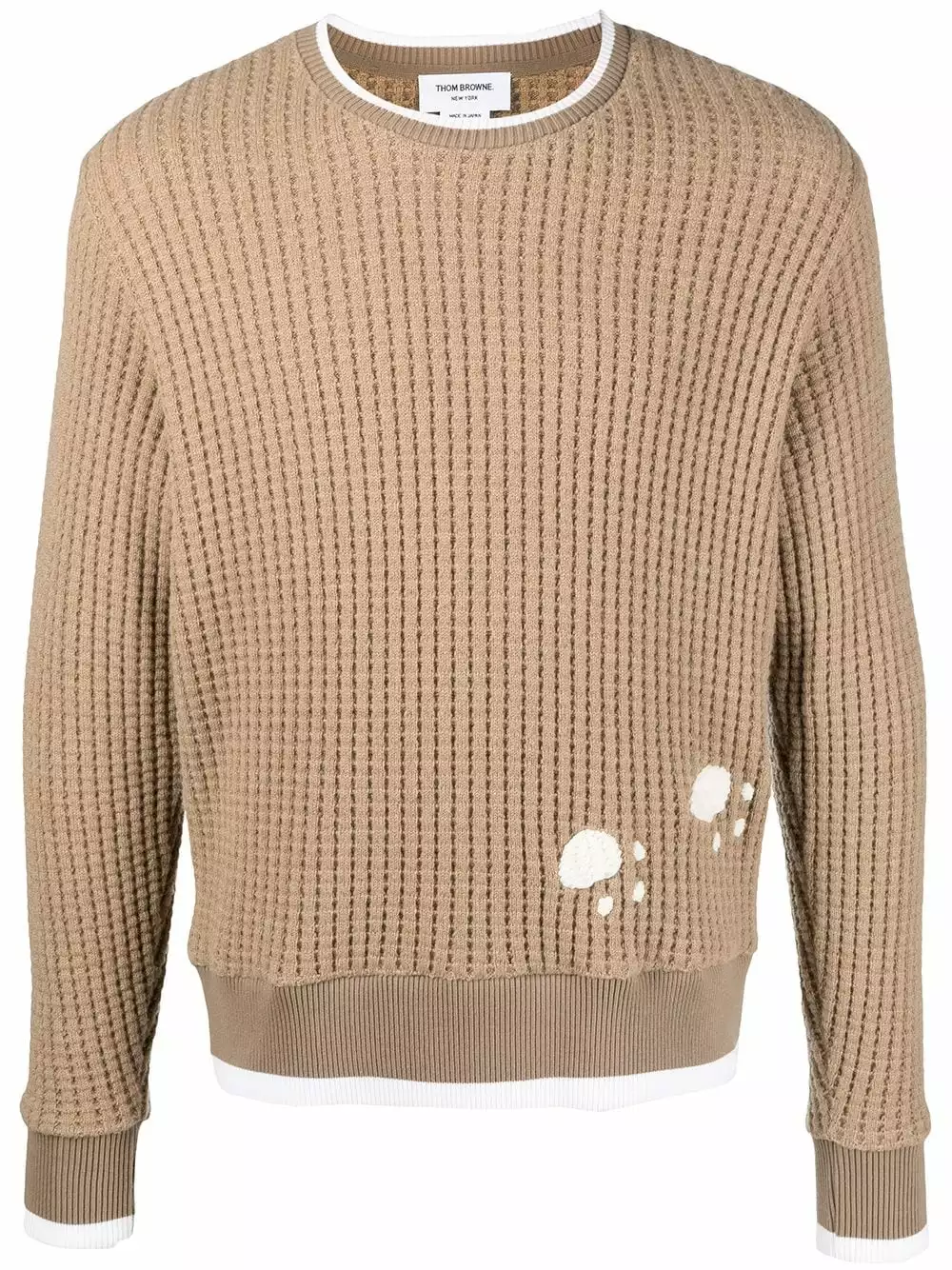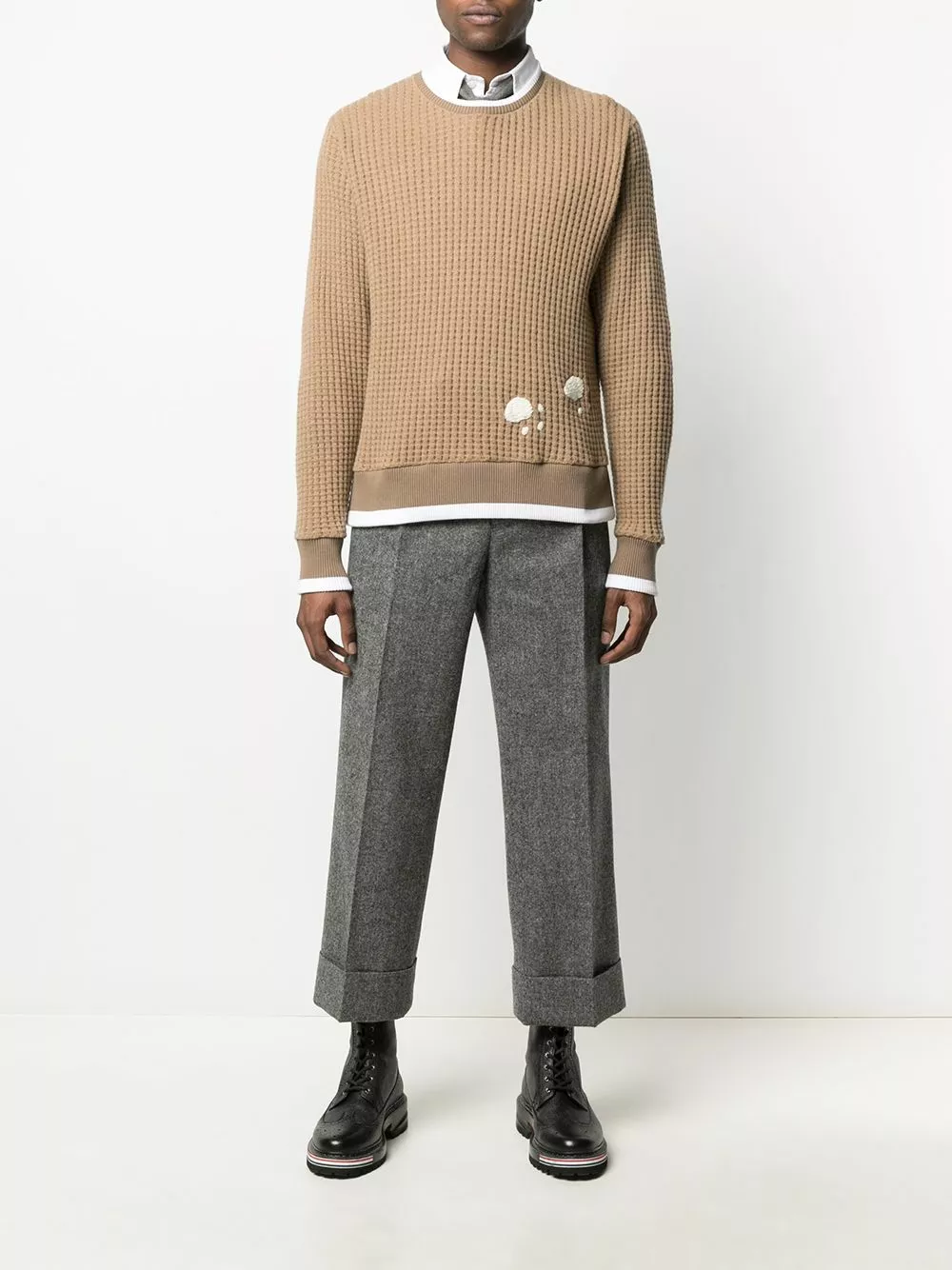 What are the ‘bear’ necessities for you? Thom Browne’s waffle-knit bear jumper may prove itself to be an essential in your wardrobe with a cosy wool construction and charming embroidered patches. A creature comfort.