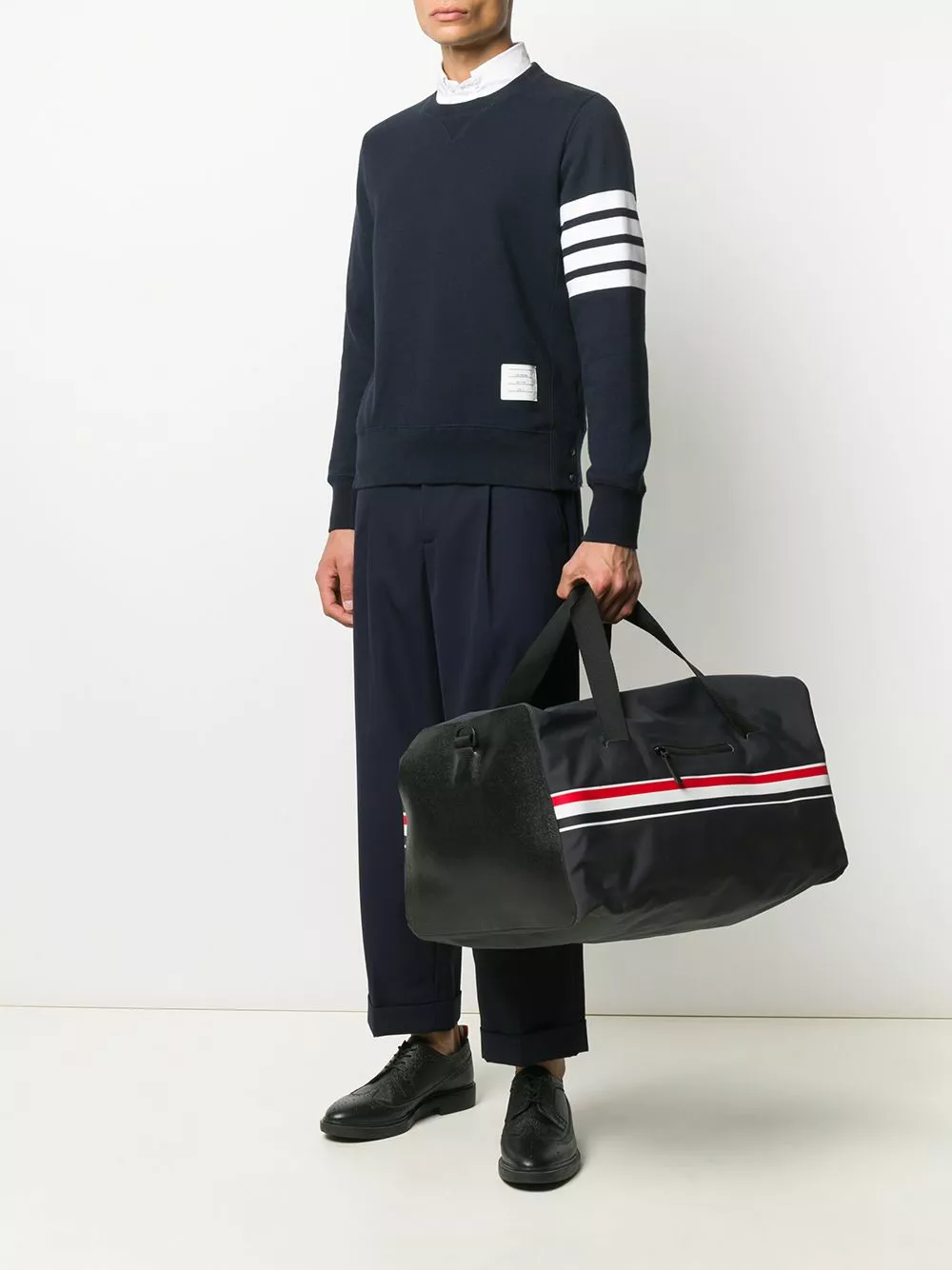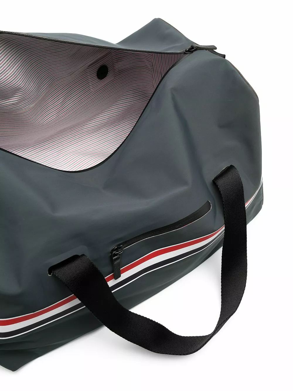 Long weekend away approaching? Let Thom Browne get you prepared with this waterproof welded duffle bag showcasing the three-stripe detailing to the straps. You’ll be finding excuses to book another one soon after. Featuring a detachable and adjustable shoulder strap, top handles, a top zip fastening, a main internal compartment, a front zip pocket, Select a atribute and RWB stripe.